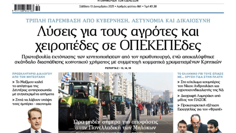 Διαβάστε σήμερα στην Απογευματινή: Λύσεις για τους αγρότες και χειροπέδες σε ΟΠΕΚΕΠΕδες