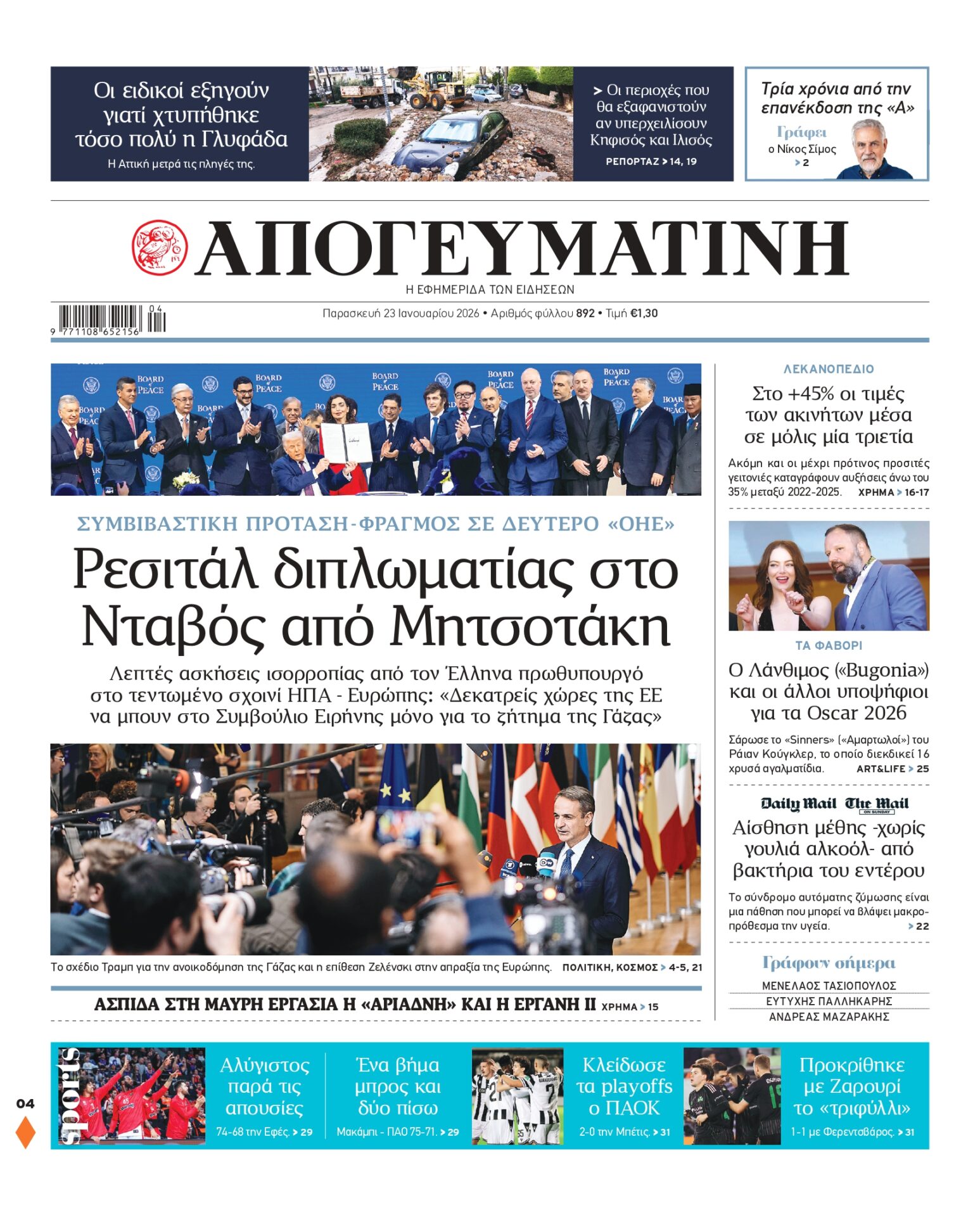 Διαβάστε στην Απογευματινή: Ρεσιτάλ διπλωματίας στο Νταβός από Μητσοτάκη – Λεπτές ασκήσεις ισορροπίας από τον Έλληνα πρωθυπουργό