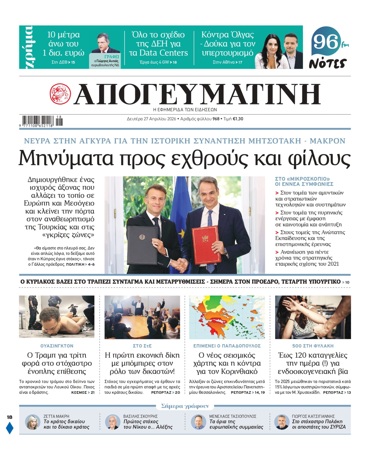 Ρεπορτάζ, άρθρα, αναλύσεις στην Απογευματινή που κυκλοφορεί σε όλα τα περίπτερα