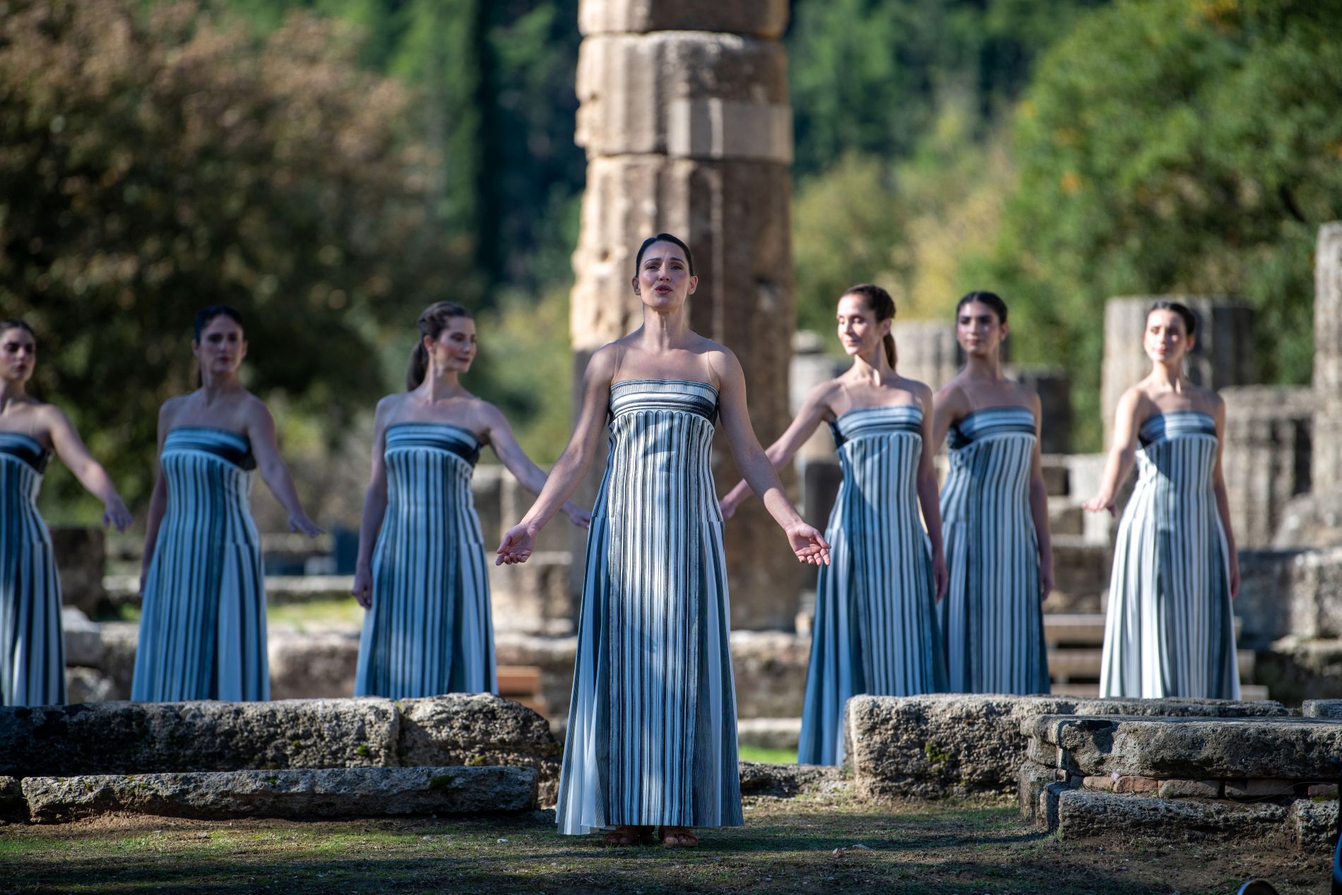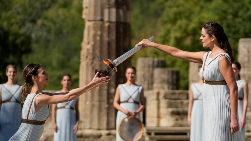 Η τελετή στην Αρχαία Ολυμπία θα ξεκινήσει στις 11:00 με την άφιξη των επισήμων, μεταξύ των οποίων ο Πρόεδρος της Δημοκρατίας Κωνσταντίνος Τασούλας, η Πρόεδρος της ΔΟΕ Κρίστι Κόβεντρι και ο Πρόεδρος της ΕΟΕ Ισίδωρος Κούβελος. Θα ακολουθήσουν χαιρετισμοί, η έπαρση των σημαιών και οι ερμηνείες των εθνικών ύμνων από χορωδίες και διακεκριμένους ερμηνευτές.