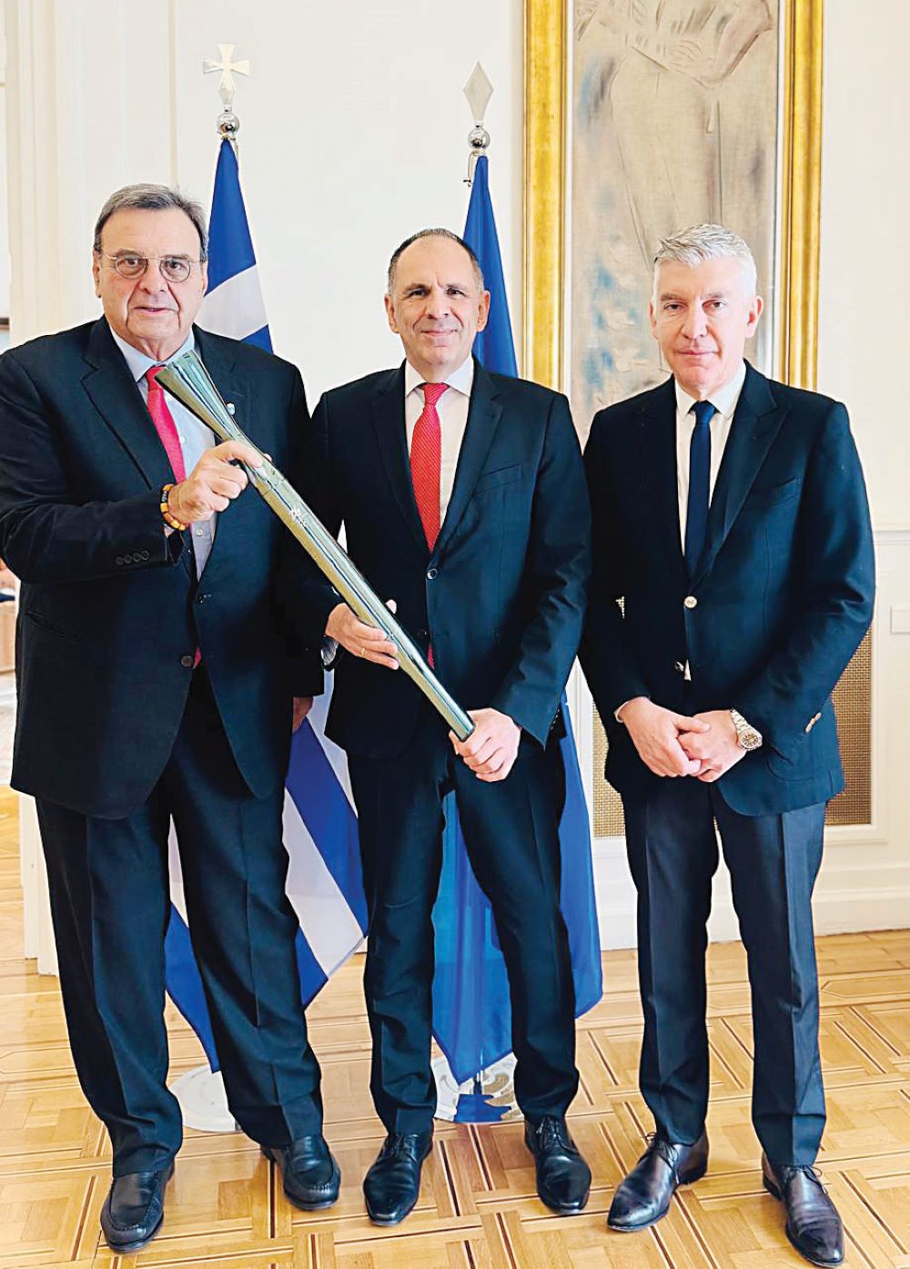 Ο Ισίδωρος Κούβελος, πρόεδρος της Ελληνικής Ολυμπιακής Επιτροπής (ΕΟΕ), μαζί με τον γενικό γραμματέα Στέφανο Χανδακά επισκέφθηκαν στο γραφείο του τον υπουργό Εξωτερικών, Γιώργο Γεραπετρίτη, και του παρουσίασαν την πρωτοβουλία που έχει αναλάβει η ΕΟΕ για τη δημιουργία του Ελληνικού Ολυμπιακού Σπιτιού (Hellenic Olympic House), που θα λειτουργήσει στο Λονγκ Μπιτς στην Καλιφόρνια κατά τη διάρκεια των Ολυμπιακών Αγώνων του Λος Άντζελες. Ο κ. Κούβελος πρόσφερε στον υπουργό Εξωτερικών μια δάδα των Χειμερινών Ολυμπιακών Αγώνων Milano Cortina 2026.