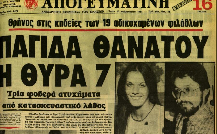 Η 8η Φεβρουαρίου του 1981 έχει χαρακτηριστεί ως η αποφράδα μέρα τόσο για τον Ολυμπιακό όσο και για τον ελληνικό αθλητισμό. Ήταν η μέρα που κόπηκε άδικα και ξαφνικά το νήμα της ζωής 21 φιλάθλων των «Πειραιωτών» που είχαν βρεθεί στις κερκίδες του Σταδίου Καραϊσκάκη για να δουν την αγαπημένη τους ομάδα να συντρίβει την ΑΕΚ με 6-0 με τον Μάικ Γαλάκο να σημειώνει χατ-τρικ και τη λίστα των σκόρερς να συμπληρώνουν ο Κουσουλάκης, ο Ορφανός και ο Βαμβακούλας. Δευτερόλεπτα πριν λήξει ο αγώνας ένα τεράστιο κύμα φιλάθλων έφυγε από τη «Θύρα 7» με σκοπό να φτάσει στη «Θύρα 1» για να συναντήσει τους θριαμβευτές.