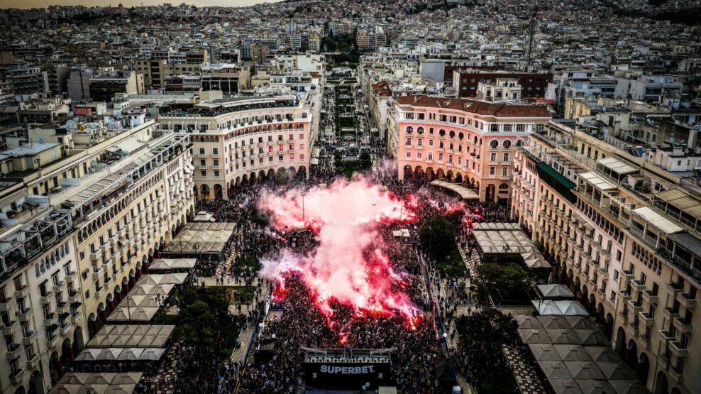 Τα 100 χρόνια από την ίδρυσή του έκλεισε χθες ο ΠΑΟΚ και η Θεσσαλονίκη ντύθηκε στα ασπρόμαυρα. Πολλές ήταν οι εκδηλώσεις που έγιναν στην πλατεία Αριστοτέλους. Ο κόσμος της ομάδας ήταν εκεί και το χάρηκε, ενώ νωρίτερα η ΠΑΕ ΠΑΟΚ είχε αναφέρει στο μήνυμά της: «Ένας αιώνας ΠΑΟΚ. Τέσσερα γράμματα. Ένα έμβλημα. Μία ιδέα. Από το Πέρα της Κωνσταντινούπολης στη Θεσσαλονίκη κι από εκεί σε κάθε γωνιά της Γης. Μία σπίθα έγινε φλόγα. Και η φλόγα έγινε πυρκαγιά, που δεν σβήνει. Γιατί ο ΠΑΟΚ δεν είναι απλά μια ομάδα. Είναι τρόπος ζωής. Είναι μνήμη. Είναι πάθος. Είναι οικογένεια. Τι είσαι για μένα κανείς δεν ξέρει… Ένας αιώνας ΠΕΡΗΦΑΝΙΑΣ. Ένας αιώνας ΑΝΤΙΣΤΑΣΗΣ. Ένας αιώνας ΟΝΕΙΡΟΥ και ΚΑΤΑΚΤΗΣΗΣ. Μέσα από στάχτες, δάκρυα, μάχες, πόνο και θριάμβους, δεν σταματήσαμε ποτέ. Δεν λυγίσαμε. Δεν ξεχάσαμε. Δεν σιωπήσαμε. Γίναμε πιο δυνατοί. Πιο πολλοί. Γίναμε ένα. Και τώρα… δεν κοιτάμε πίσω. Με τη συνείδηση καθαρή και με οδηγό την ιστορία μας, γράφουμε το επόμενο κεφάλαιο. Πανθεσσαλονίκειος, Αθλητικός, Όμιλος, Κωνσταντινουπολιτών. 100 χρόνια ασπρόμαυρης μαγείας! Κι είμαστε ακόμα στην αρχή…».