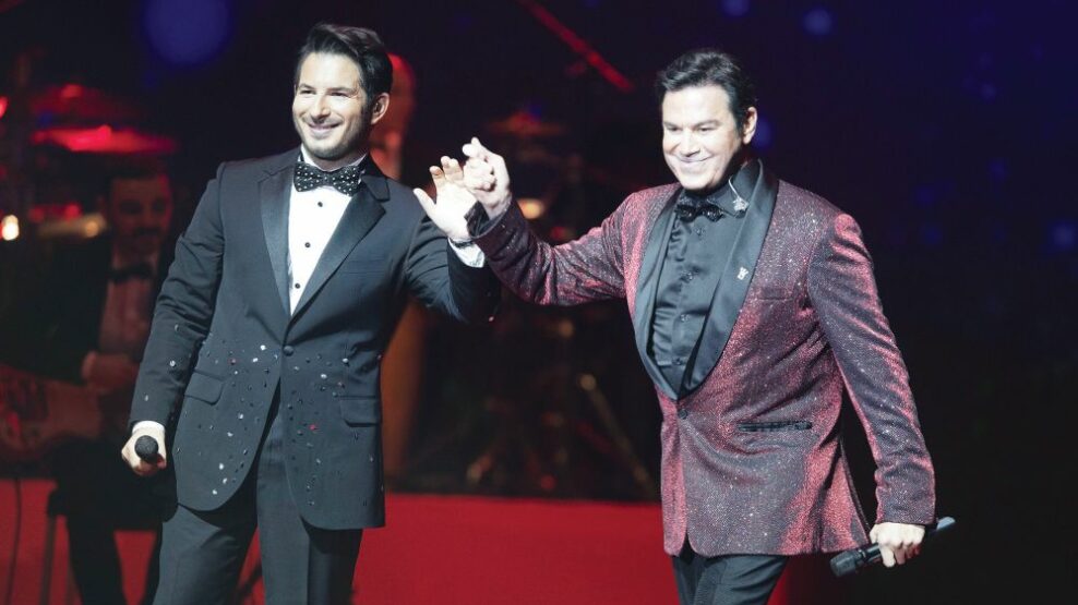 Ο διεθνής Κερκυραίος σταρ της όπερας Μάριος Φραγκούλης και ο σταθερός μουσικός συνοδοιπόρος του, Γιώργος Περρής, σε εορταστική διάθεση.