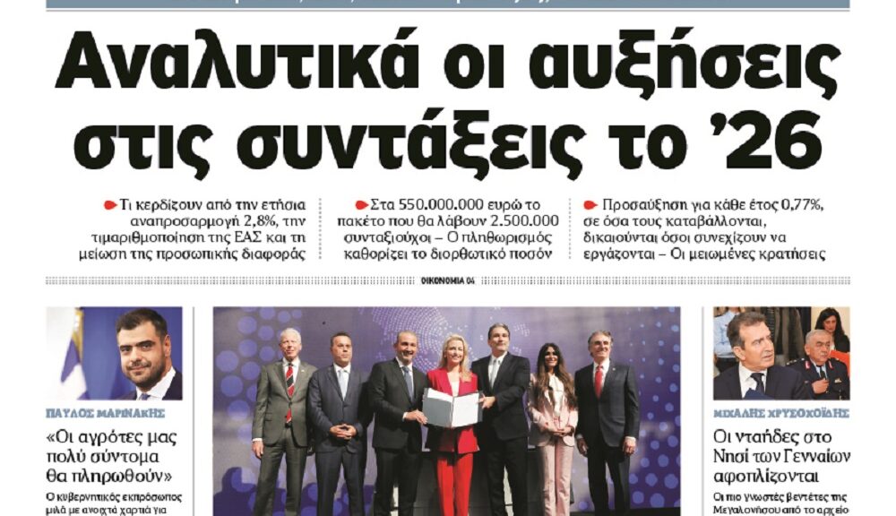 Κεραμέως: Αυξημένες και νωρίτερα του προβλεπόμενου οι συντάξεις Ιανουαρίου