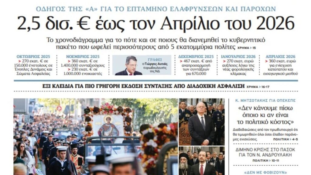 Πρωτοσέλιδα Εφημερίδας Διαβάστε στην Απογευματινή: Οι “χρυσές” αποδείξεις που μηδενίζουν τον φόρο – Οδηγός για μικρότερες επιβαρύνσεις Πλούσιο ρεπορτάζ στην Απογευματινή που κυκλοφορεί 08:13 - 20 Οκτωβρίου 2025