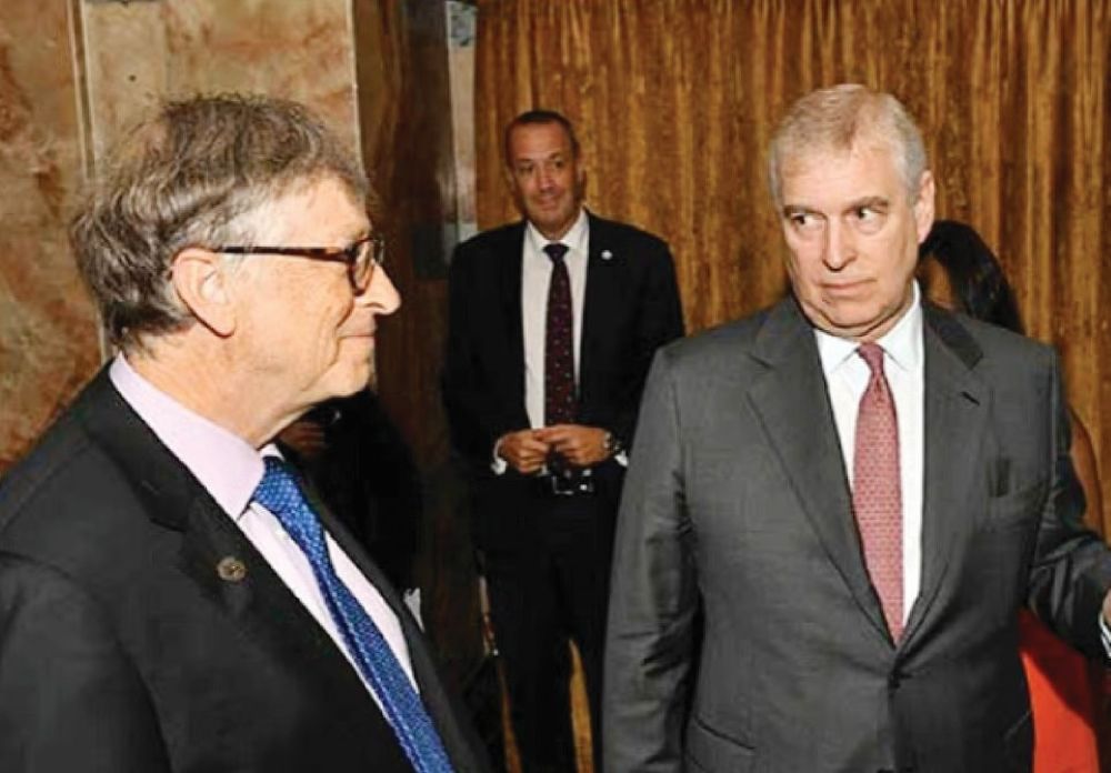 Μια φωτογραφία δείχνει τον Άντριου με τον Μπιλ Γκέιτς σε δημόσια εκδήλωση το 2018. Στην αρχική φωτογραφία εικονιζόταν επίσης ο βασιλιάς Κάρολος, αλλά έχει περικοπεί.