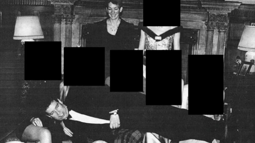 Η ασπρόμαυρη φωτογραφία δείχνει τον Άντριου να ξαπλώνει στην αγκαλιά πέντε κομψά ντυμένων γυναικών. Ούτε η ημερομηνία ούτε η τοποθεσία της φωτογραφίας δόθηκαν στη δημοσιότητα, αλλά η «Mail on Sunday» μπορεί να αποκαλύψει ότι αποτυπώνει «ένα από τα ιδιωτικά άδυτα της βασιλικής οικογένειας που θα φρίξει», μια θορυβώδη σκηνή από ένα πάρτι που διοργάνωσε ο Άντριου για τον παιδόφιλο Τζέφρι Επστάιν και τη σύντροφό του Γκισλέιν Μάξγουελ στο Σάντριγχαμ στις αρχές Δεκεμβρίου του 2000 με αφορμή τα 39α γενέθλια της Μάξγουελ. Και, σε αντίθεση με την περιγραφή του Άντριου για τη συγκέντρωση, έχουν προκύψει ισχυρισμοί για μια έκλυτη εκδήλωση στην αγαπημένη ιδιωτική κατοικία της βασίλισσας Ελισάβετ στο Νόρφολκ. Λιπαντικά, προφυλακτικά και ναρκωτικά για την ενίσχυση της σεξουαλικής εμπειρίας βρέθηκαν μετά το πάρτι, σύμφωνα με ένα βιβλίο-βόμβα.