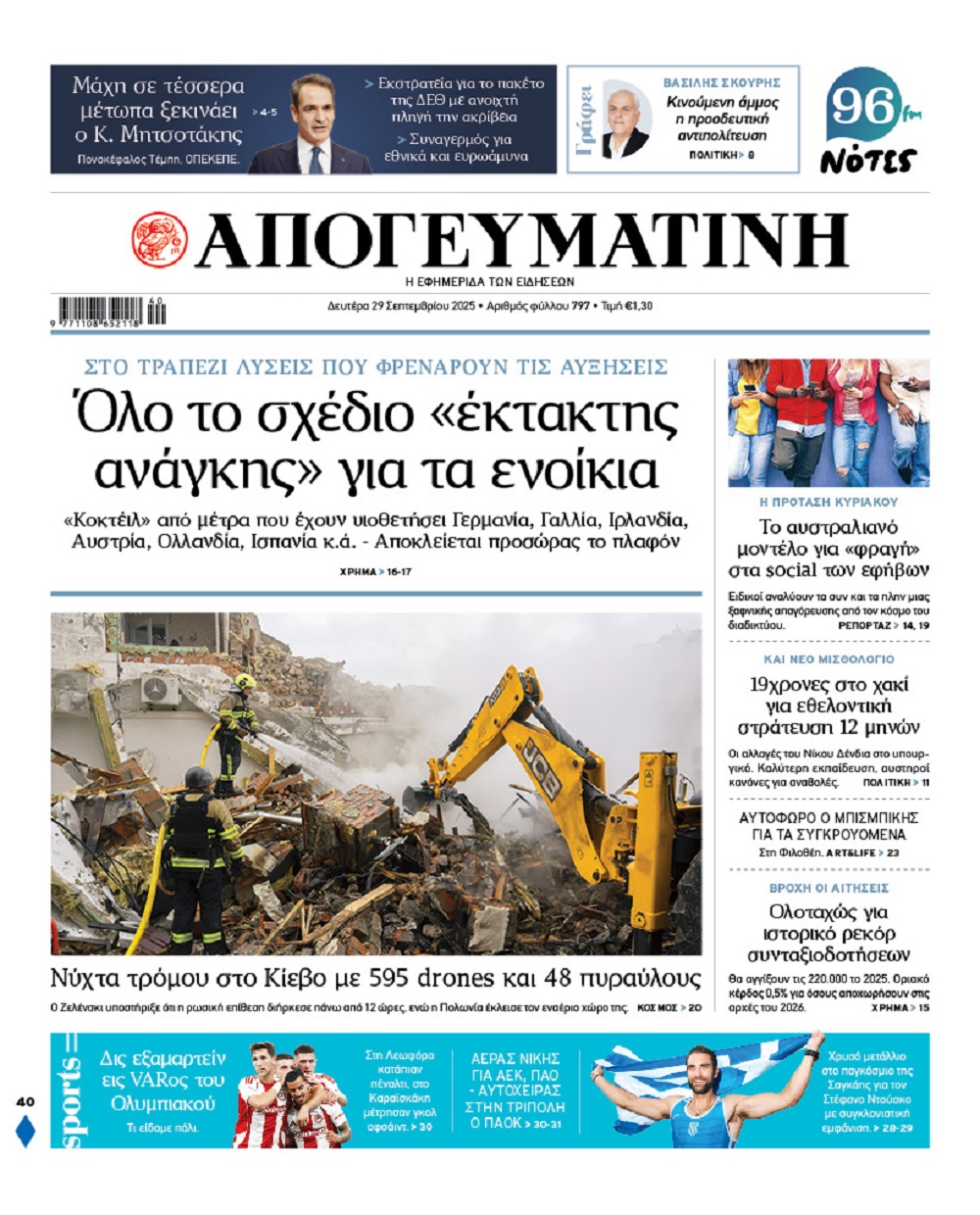Εφημερίδα Απογευματινή – Τετάρτη 1 Οκτωβρίου 2025