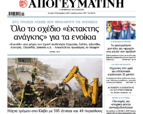 Εφημερίδα Απογευματινή – Τετάρτη 1 Οκτωβρίου 2025