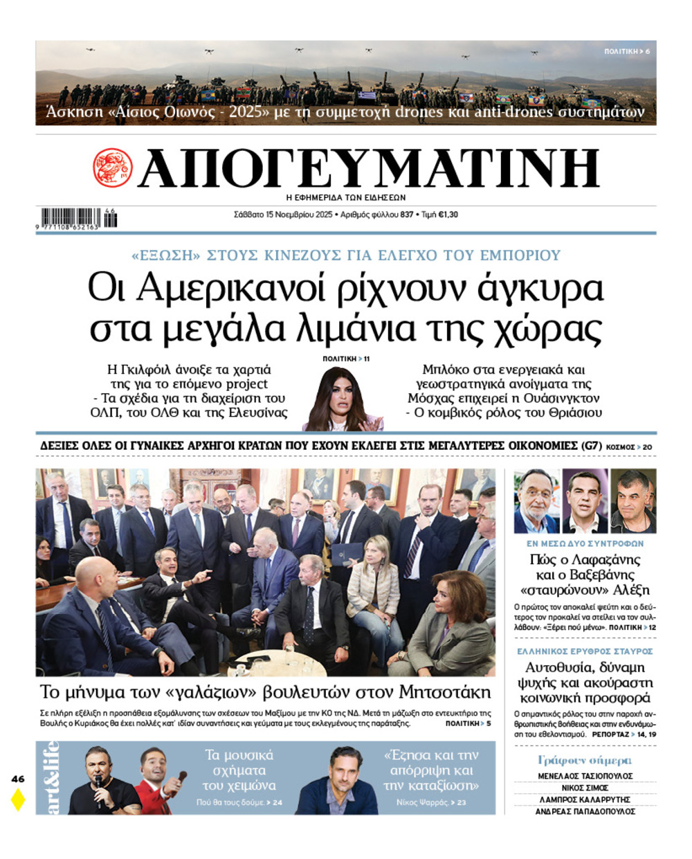 Διαβάστε στην Απογευματινή: Οι Αμερικανοί ρίχνουν άγκυρα στα μεγάλα λιμάνια της χώρας