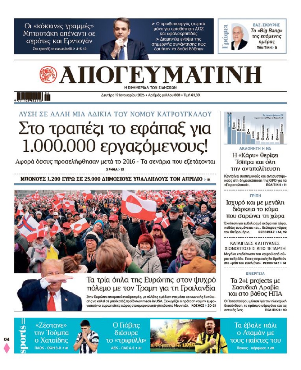 Διαβάστε στην Απογευματινή: Στο τραπέζι το εφάπαξ για 1.000.000 εργαζόμενους!