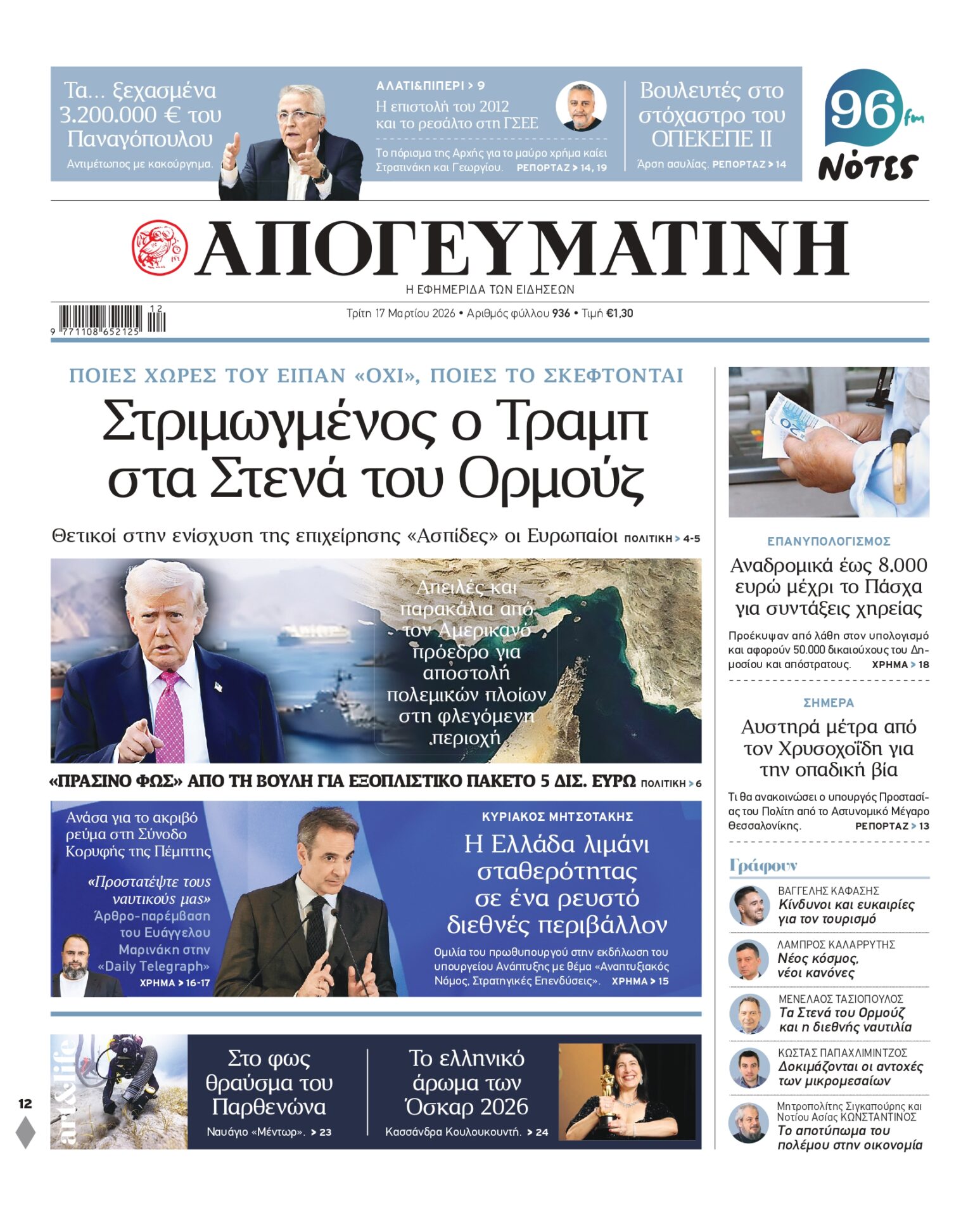 Διαβάστε στην Απογευματινή: Στριμωγμένος ο Τραμπ στα Στενά του Ορμούζ