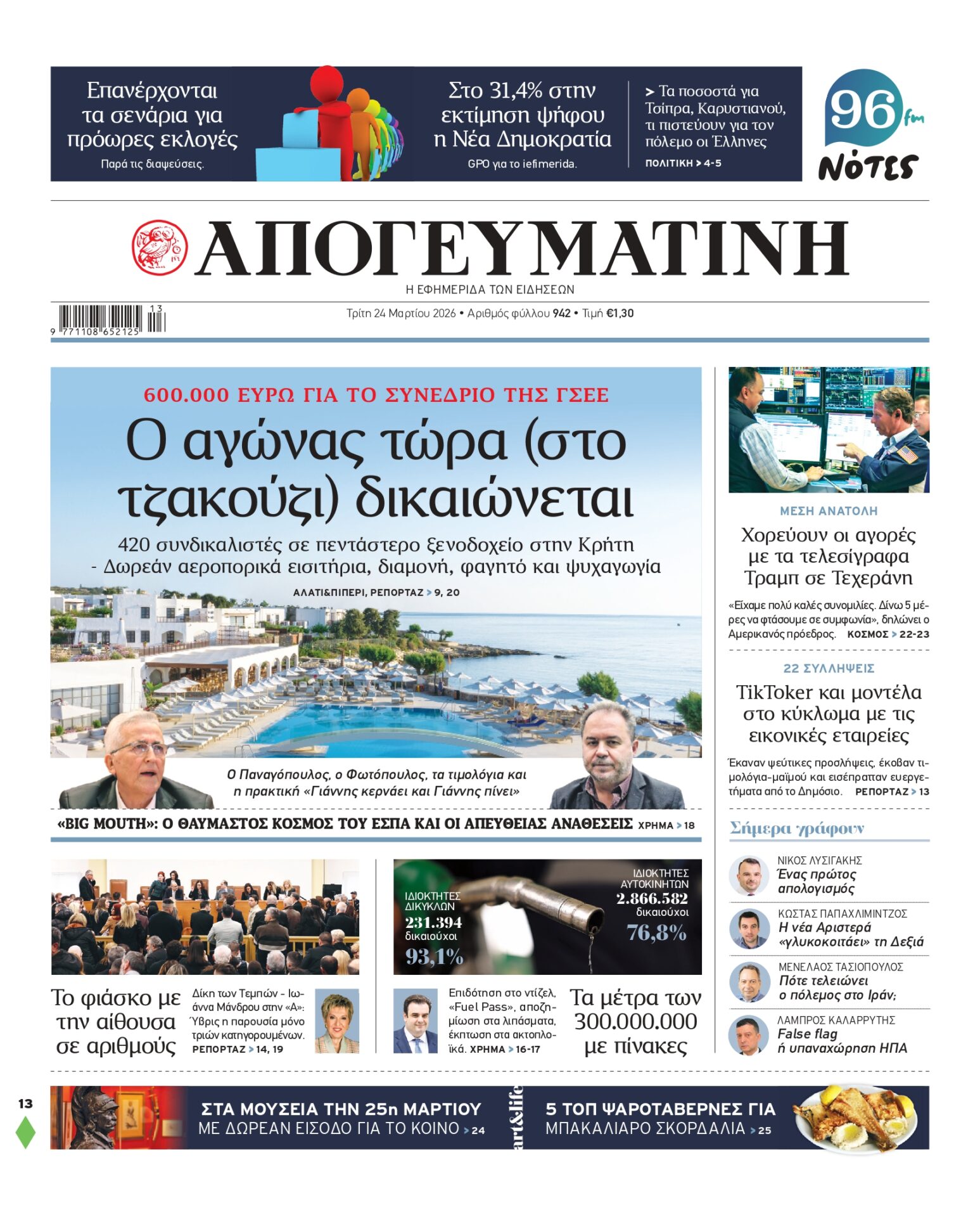 07:09 - 23 Μαρτίου 2026 Διαβάστε στην Απογευματινή: «Fuel Pass» για την αμόλυβδη και επιδότηση στο πετρέλαιο