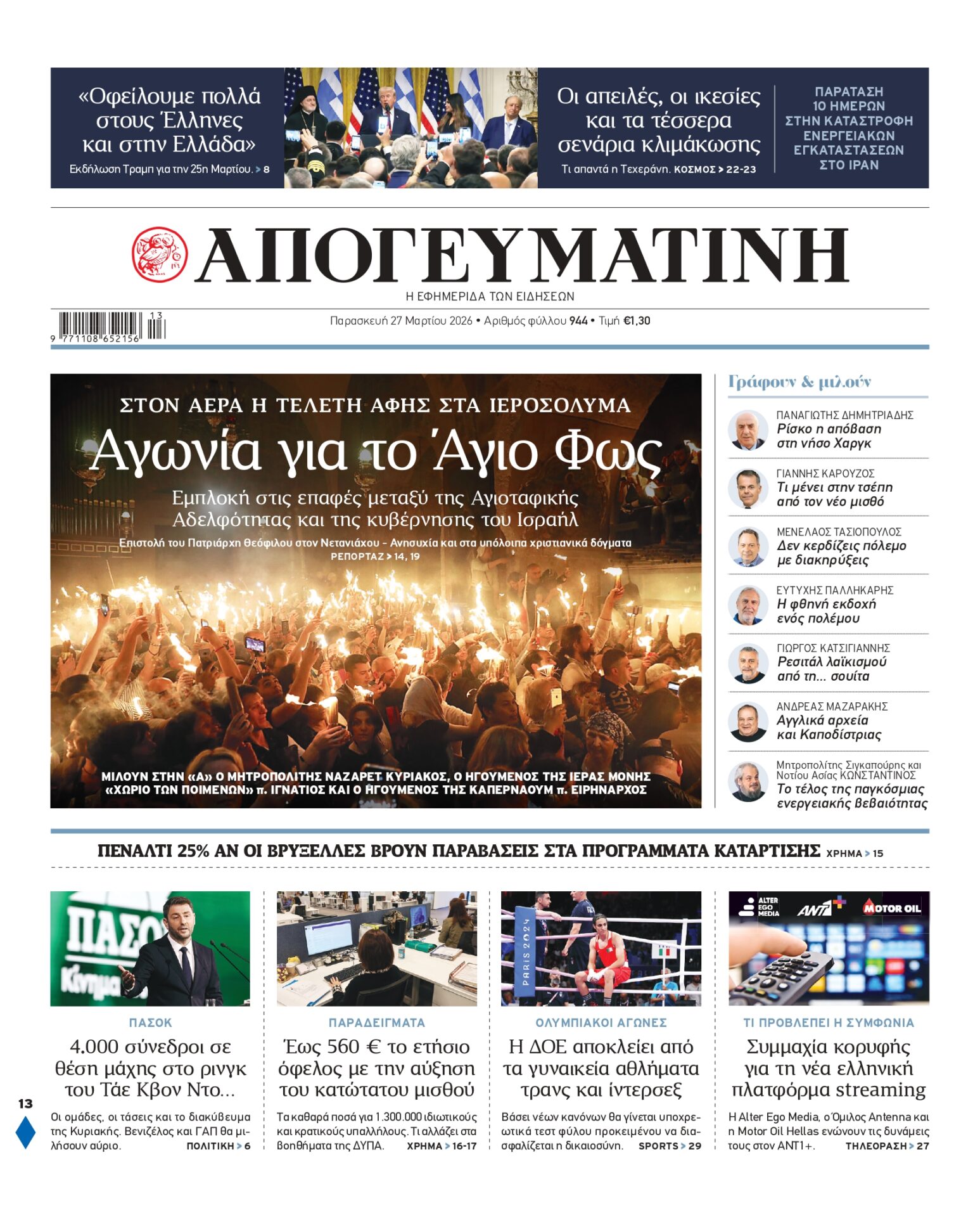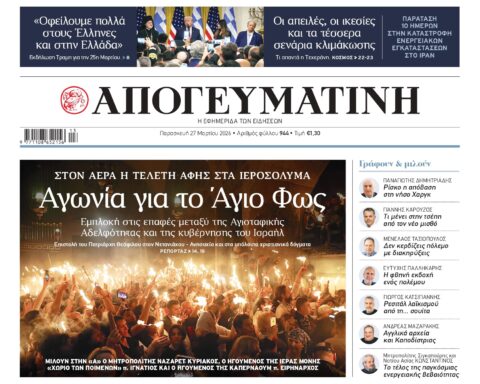 Διαβάστε στην Απογευματινή: Αγωνία για το Άγιο Φως – Στον αέρα η τελετή αφής στα Ιεροσόλυμα