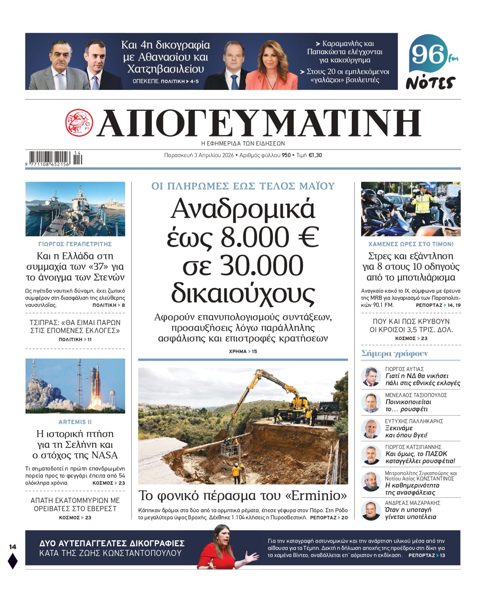 Διαβάστε στην Απογευματινή: Αναδρομικά έως 8.000 ευρώ σε 30.000 δικαιούχους