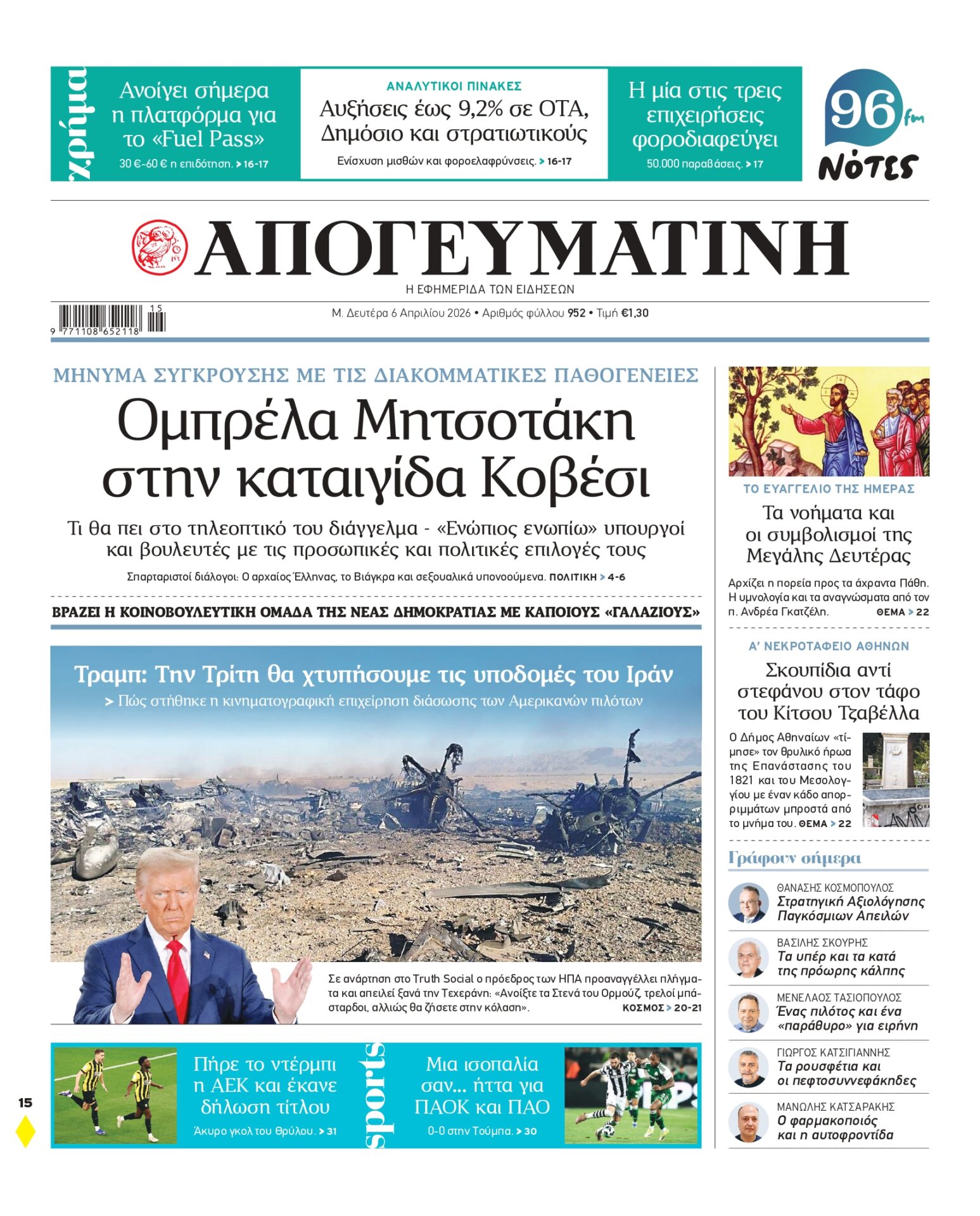 Διαβάστε στην Απογευματινή: Ομπρέλα Μητσοτάκη στην καταιγίδα Κοβέσι