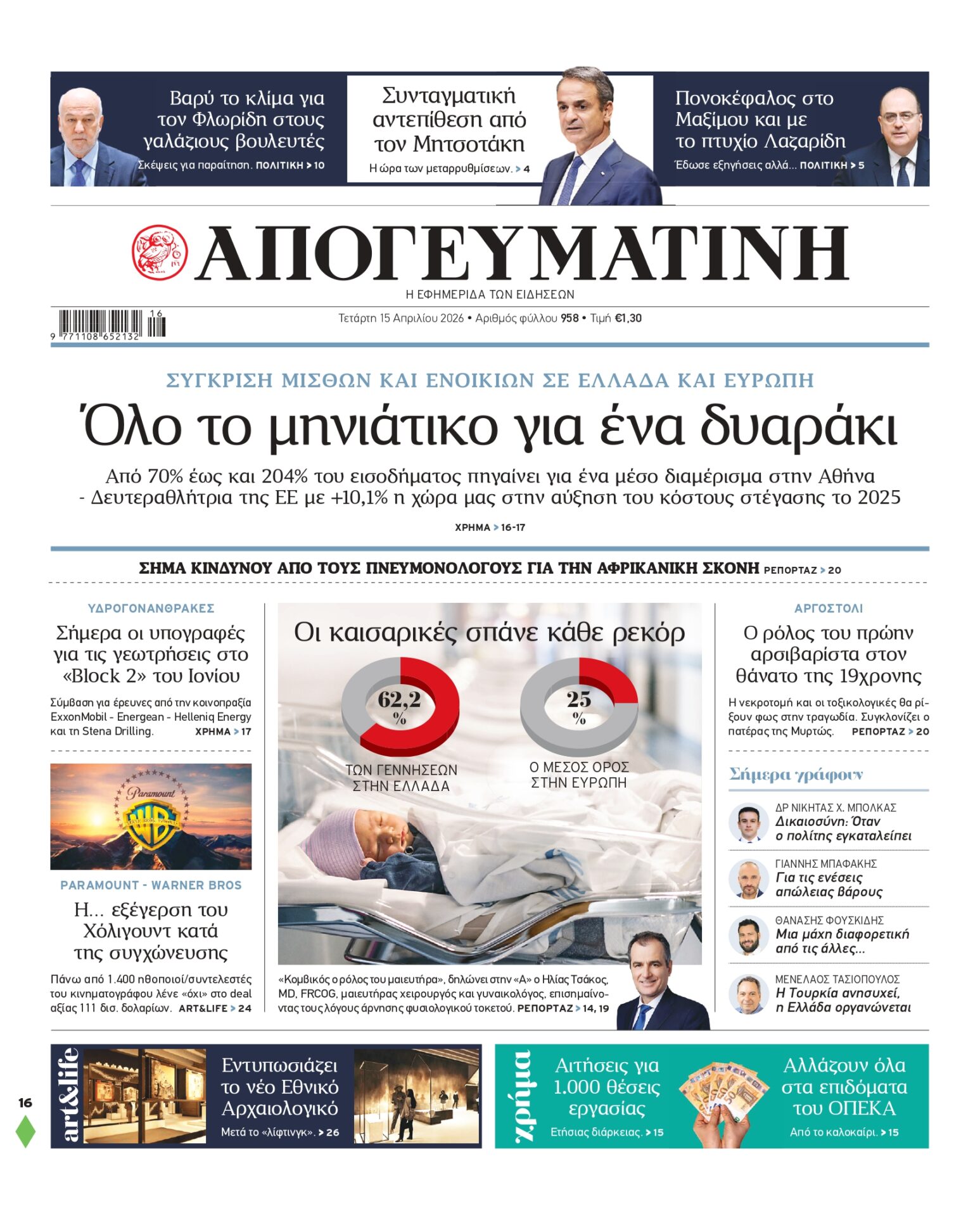 Διαβάστε στην Απογευματινή: Όλο το μηνιάτικο για ένα δυαράκι