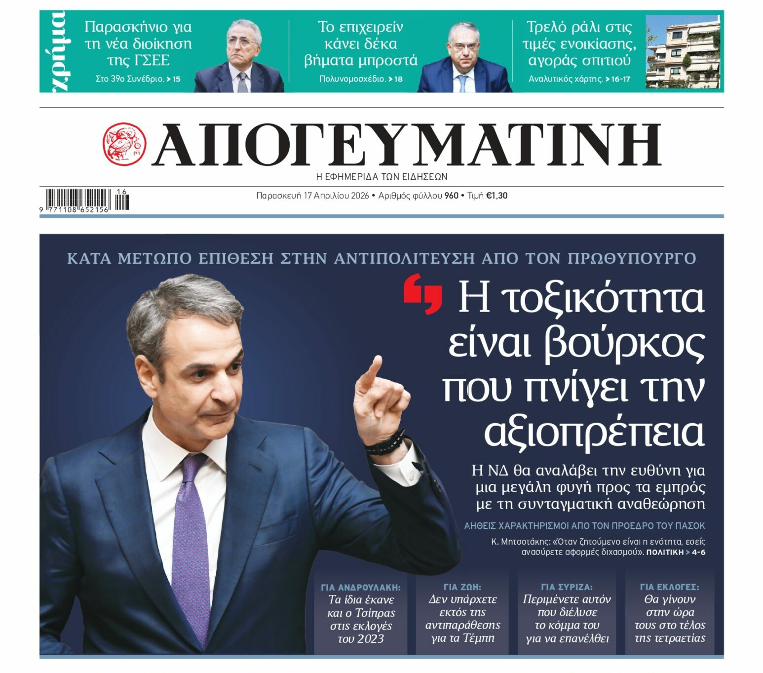 Διαβάστε στην Απογευματινή: Η τοξικότητα είναι βούρκος που πνίγει την αξιοπρέπεια