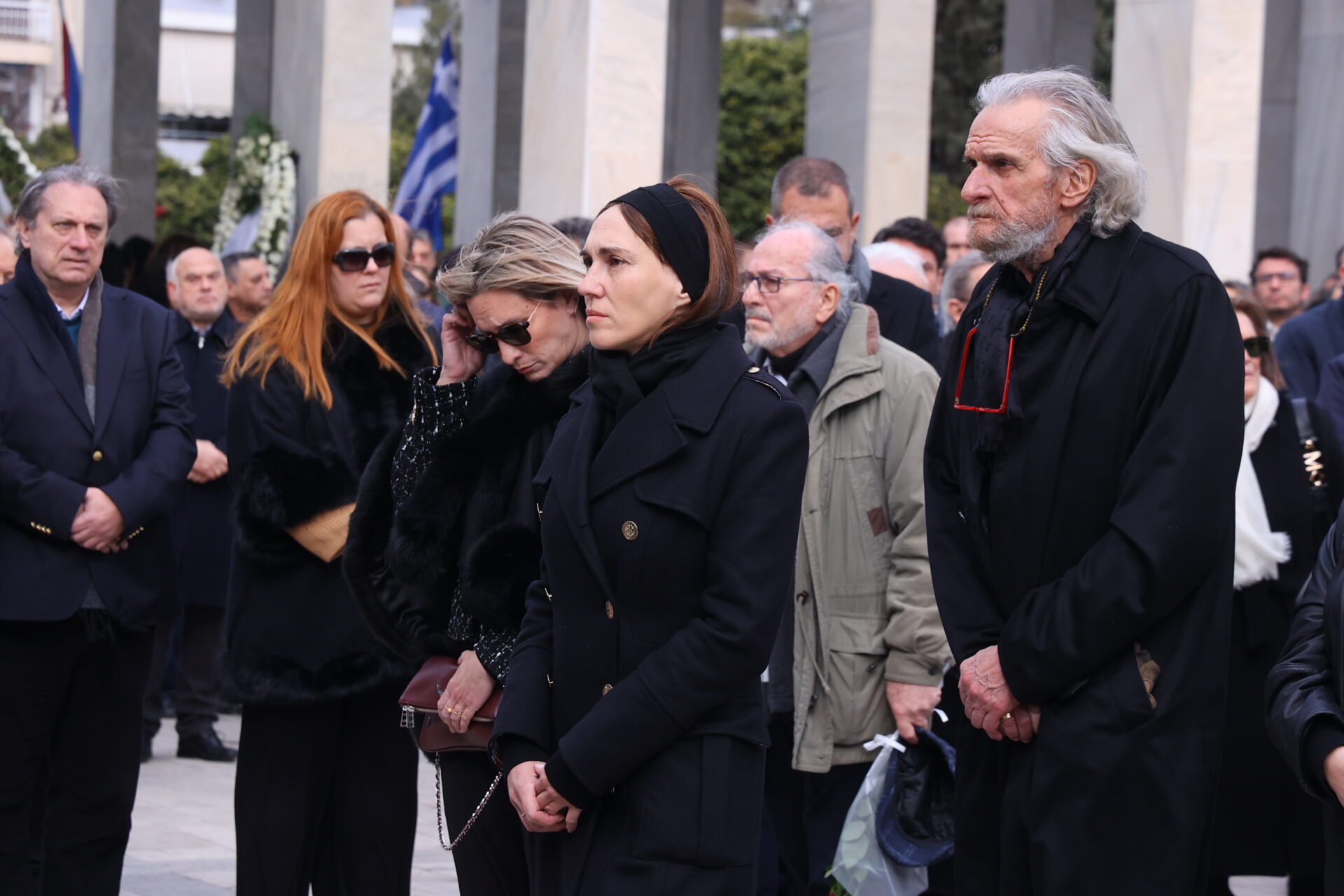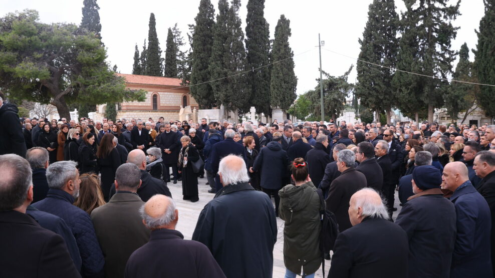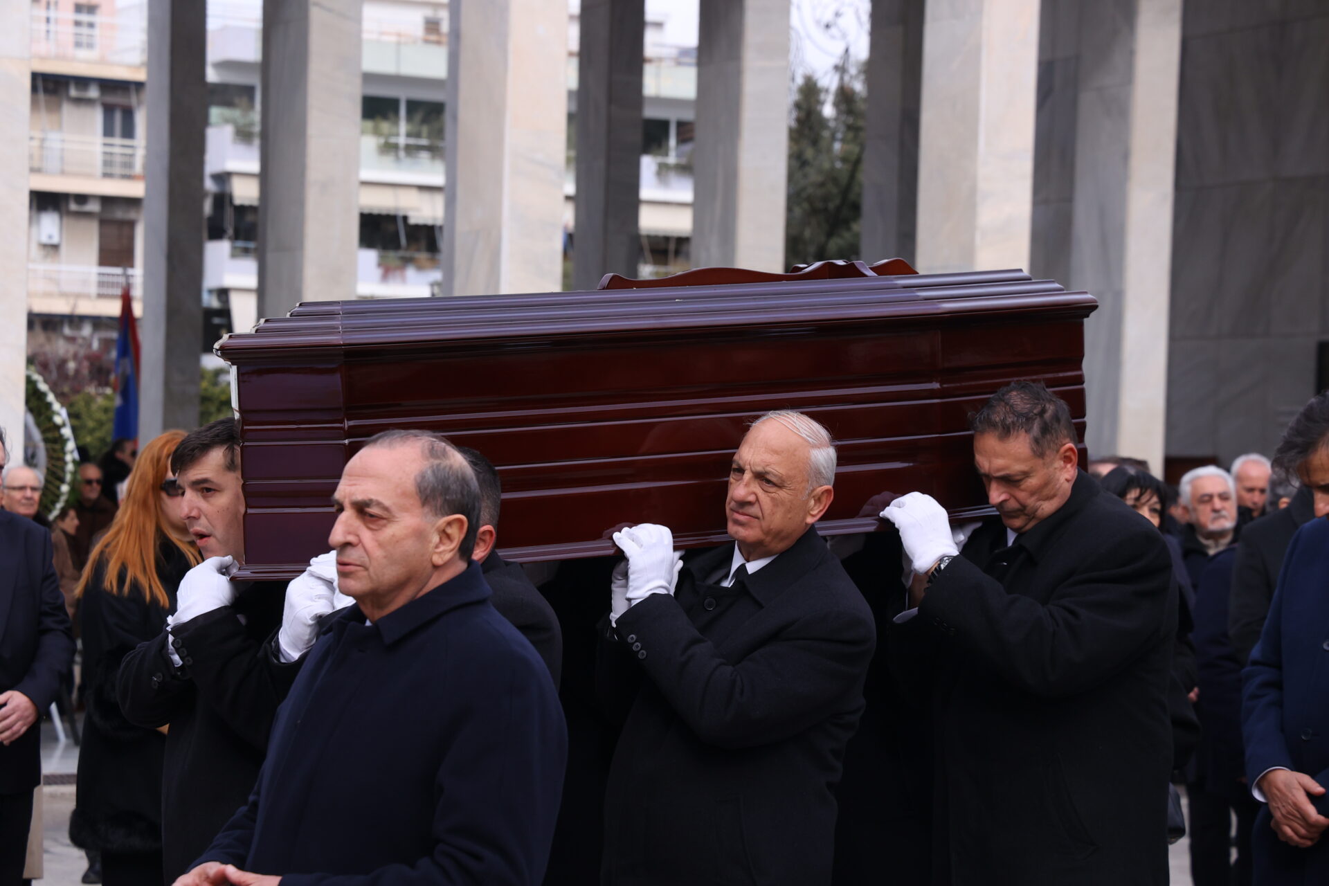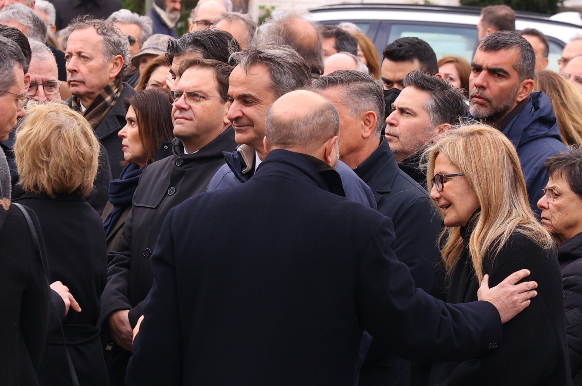 Παρόντες ο πρωθυπουργός Κυριάκος Μητσοτάκης, συνοδευόμενος από τη σύζυγό του Μαρέβα Γκραμπόφσκι, για να αποχαιρετήσουν έναν από τους πλέον επιδραστικούς παράγοντες της ελληνικής οικονομίας.