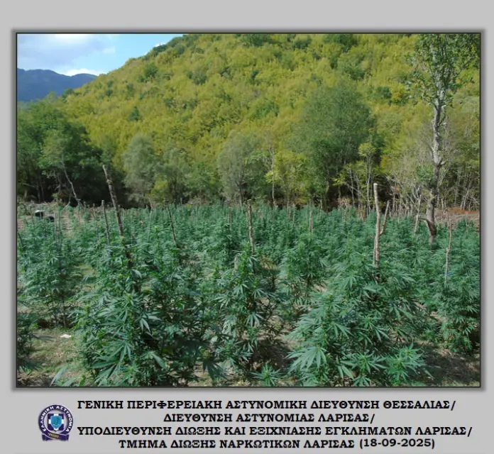 Μια από τις μεγαλύτερες φυτείες κάνναβης που έχουν εντοπιστεί τα τελευταία χρόνια στην περιοχή της Λάρισας αποκάλυψαν οι αστυνομικές Αρχές, εντοπίζοντας συνολικά 5.085 δενδρύλλια σε ορεινή και δασώδη περιοχή του Ολύμπου. Η φυτεία εκτεινόταν σε έκταση 10 στρεμμάτων, με τα φυτά να βρίσκονται σε διάφορα στάδια ανάπτυξης, από 1 έως και 3,5 μέτρα ύψος, ενώ αρκετά εξ αυτών βρίσκονταν στο στάδιο της συγκομιδής.