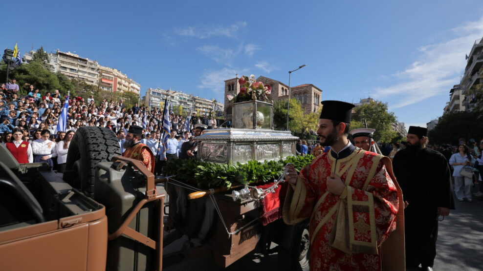 Οι εορτασμοί στον Ιερό Ναό Αγίου Δημητρίου ξεκίνησαν με Όρθρο και τρισαρχιερατική Θεία Λειτουργία προεξάρχοντος του Μητροπολίτη Σιδηροκάστρου κ. Μακαρίου. Ακολούθησε λιτανεία των Ιερών Εικόνων της Παναγίας Φανερωμένης «Βαθυρρύακος» και του Αγίου Δημητρίου, συνοδεία των χαριτοβρύτων Ιερών Λειψάνων, σε κεντρικούς δρόμους της πόλης, όπως η Αγίου Δημητρίου, η Βενιζέλου, η Εγνατία και η Αγίας Σοφίας.