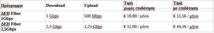 Νέα, μειωμένα τιμολόγια για τους δικαιούχους της δράσης Gigabit Voucher που επιδοτεί συνδέσεις υπερυψηλής ταχύτητας για νοικοκυριά και επαγγελματίες, θέτει σε ισχύ η ΔΕΗ σε όλα τα προγράμματα ΔΕΗ Fiber. Οι τιμές ξεκινούν από Euro 9,56 το μήνα για τα 500 Mbps, καθιστώντας -όπως αναφέρει η επιχείρηση- τη ΔΕΗ Fiber την πιο προσιτή επιλογή FTTH στην ελληνική αγορά.