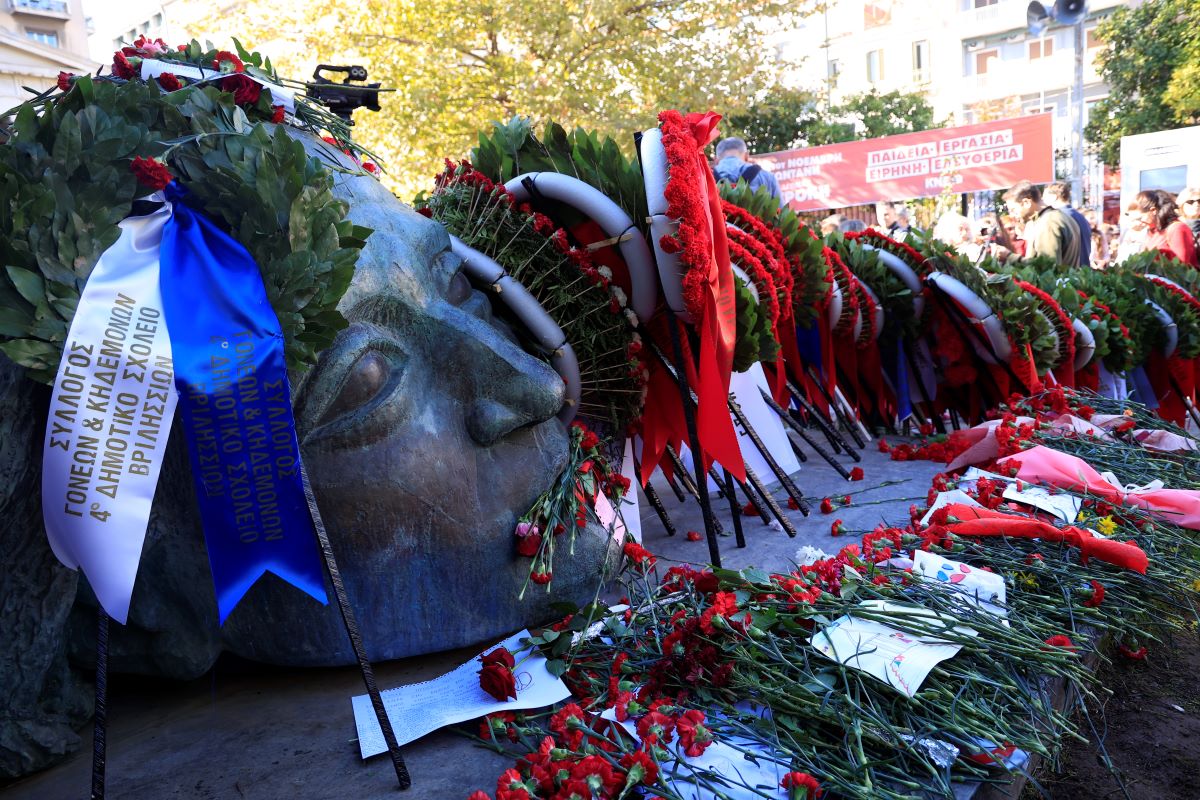 Ανοιχτές παραμένουν οι πύλες του Πολυτεχνείου, με πολίτες κάθε ηλικίας να επισκέπτονται από νωρίς το πρωί το ιστορικό ίδρυμα και να αφήνουν λουλούδια στο μνημείο των φοιτητών που έπεσαν το 1973, κατά τη διάρκεια της χούντας.