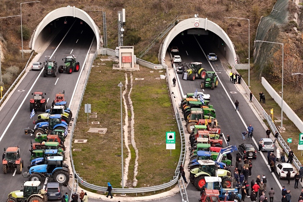 Οι εικόνες δείχνουν τα αγροτικά μηχανήματα να έχουν παραταχθεί μπροστά από τις εισόδους των τούνελ, υπογραμμίζοντας το μέγεθος της κινητοποίησης και την αποφασιστικότητα του αγροτικού κόσμου να διατηρήσει ζωντανή την πίεση προς την Πολιτεία.