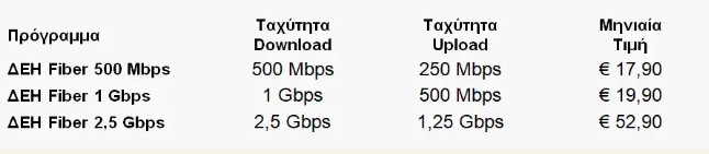 Με τρεις ξεκάθαρες επιλογές το ΔΕΗ Fiber προσφέρει την καλύτερη σχέση τιμής/απόδοσης στην αγορά.