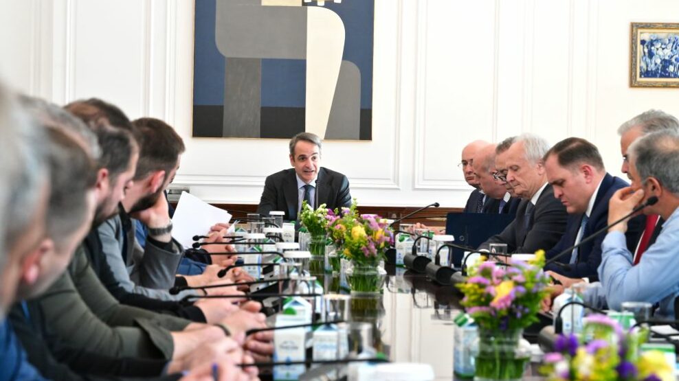 Στη συνάντηση συμμετέχουν, πέρα από τον πρωθυπουργό, ο αντιπρόεδρος της κυβέρνησης Κωστής Χατζηδάκης, ο κυβερνητικός εκπρόσωπος Παύλος Μαρινάκης, ο υφυπουργός στον πρωθυπουργό Γιώργος Μυλωνάκης, ο υπουργός Αγροτικής Ανάπτυξης και Τροφίμων Κώστας Τσιάρας, οι υφυπουργοί Γιάννης Ανδριανός και Χρήστος Κέλλας, οι γενικοί γραμματείς του υπουργείου Σπύρος Πρωτοψάλτης, Αντώνης Φιλιππής και Αργυρώ Ζέρβα, καθώς και ο διοικητής της ΑΑΔΕ, Γιώργος Πιτσιλής. Επιπλέον, στη συζήτηση συμμετέχουν οι πρόεδροι του ΕΛΓΑ και του ΟΠΕΚΕΠΕ, Ανδρέας Λυκουρέντζος και Γιάννης Καββαδάς, καθώς και ο καθηγητής Ιολογίας και πρύτανης του Πανεπιστημίου Θεσσαλίας, Χαράλαμπος Μπιλλίνης.