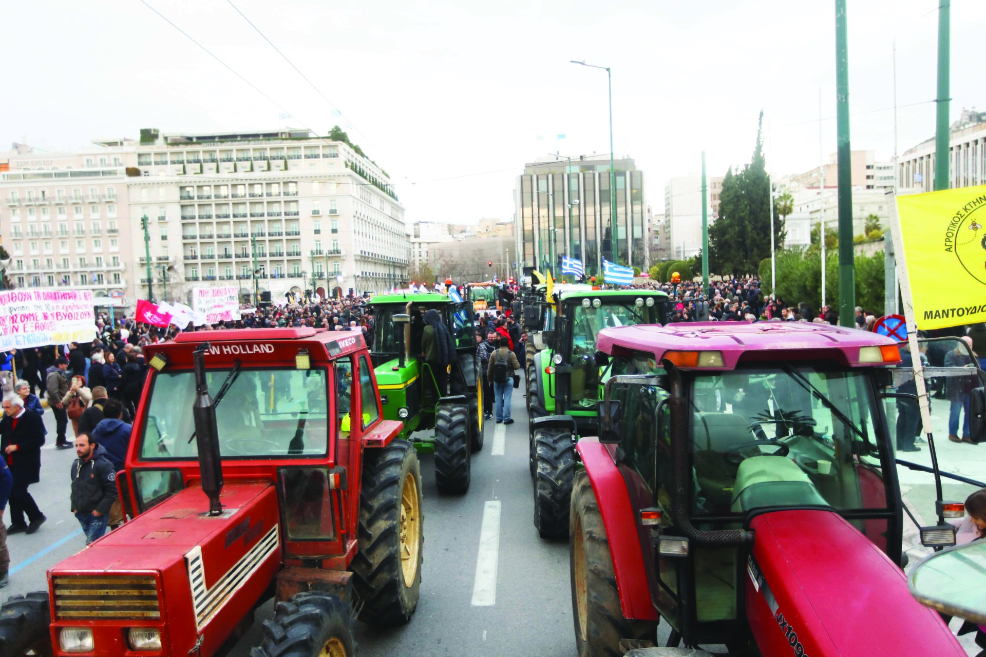 Ασφυξία στο κέντρο της Αθήνας, μπλοκάρισμα σε κεντρικές οδούς και καθυστερήσεις στην κίνηση των οχημάτων ακόμα και στην εθνική οδό προκάλεσε η «απόβαση» των αγροτών με τα βαριά αγροτικά τους οχήματα στην καρδιά της πρωτεύουσας. Οι αγρότες απ’ όλη την Ελλάδα, με δεκάδες τρακτέρ, έφτασαν λίγο πριν από τις 5 χθες το απόγευμα στην πλατεία Συντάγματος, για να πραγματοποιήσουν το συλλαλητήριο που είχαν προγραμματίσει μετά την πανελλαδική τους σύσκεψη. Μπροστά από το μνημείο του Αγνώστου Στρατιώτου στάθμευσαν 45 οχήματα, ενώ περίπου 25 ακόμη παρατάχθηκαν στην οδό Πανεπιστημίου. Προηγουμένως είχαν τεθεί σε ισχύ έκτακτα μέτρα κυκλοφορίας σε βασικούς οδικούς άξονες με τις Αρχές να καλούν τους οδηγούς να αποφεύγουν το κέντρο της πόλης και να ακολουθούν τις υποδείξεις των τροχονόμων.