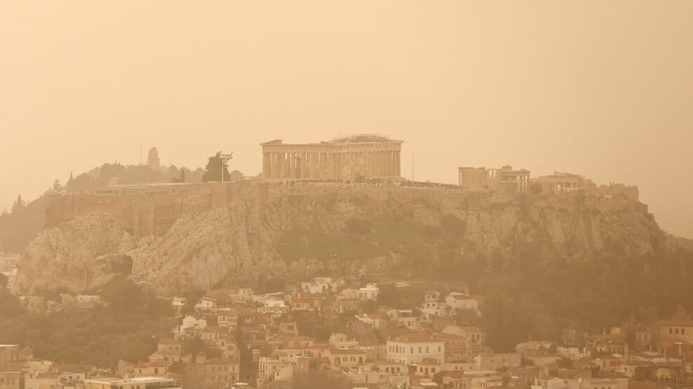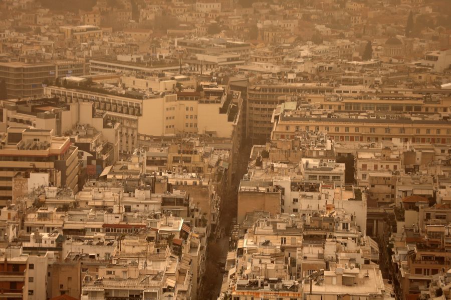 Από τις πρώτες πρωινές ώρες, η αφρικανική σκόνη έχει καλύψει την Αθήνα, δημιουργώντας ένα πυκνό, κιτρινωπό πέπλο που περιορίζει την ορατότητα και επιβαρύνει σημαντικά την ποιότητα του αέρα.