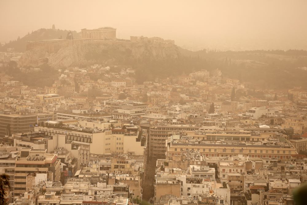 Το φαινόμενο, που προέρχεται από την έρημο της Σαχάρας, έχει «σκεπάσει» εμβληματικά σημεία της πόλης, με τον Παρθενώνα και τον Λυκαβηττό να διακρίνονται μόλις αχνά μέσα στη θολούρα.