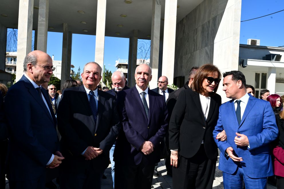 Στεφάνια απέστειλαν ο πρωθυπουργός Κυριάκος Μητσοτάκης και η υπουργός Πολιτισμού Λίνα Μενδώνη.