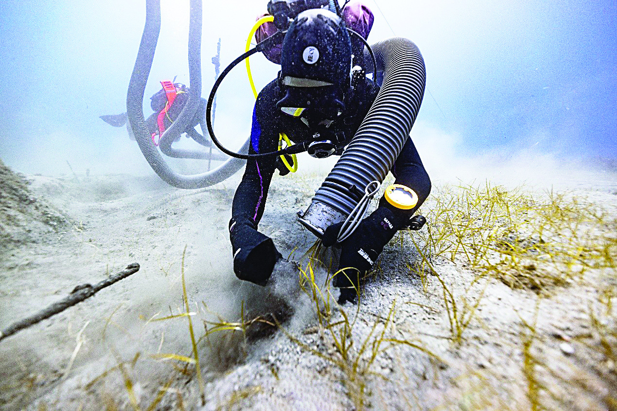 Σημειώνουμε ότι κατά την ανασκαφική περίοδο διερευνήθηκαν, επίσης, περιοχές δυτικά και βόρεια από το σωζόμενο σκαρί του πλοίου. Αρχικά ορίσθηκε ανασκαφική τομή, η οποία ονομάσθηκε συμβατικά Τομή 1/2025, σε απόσταση περίπου πέντε μέτρων δυτικότερα του σωζόμενου σκαριού. Σκοπός της τομής στη θέση αυτή ήταν να διερευνηθεί κατά πόσο είχαν τυχόν διατηρηθεί κατάλοιπα από το σκαρί του πλοίου. Κατά την ανασκαφή της τομής δεν εντοπίσθηκαν ίχνη του πλοίου, γεγονός που μάλλον επιβεβαιώνει την υπόθεση, ότι το σκαρί μετά τη βύθισή του, παρέμεινε για αρκετό διάστημα εκτεθειμένο στον πυθμένα, με αποτέλεσμα να αποσυντεθεί πλήρως και σχετικά γρήγορα.