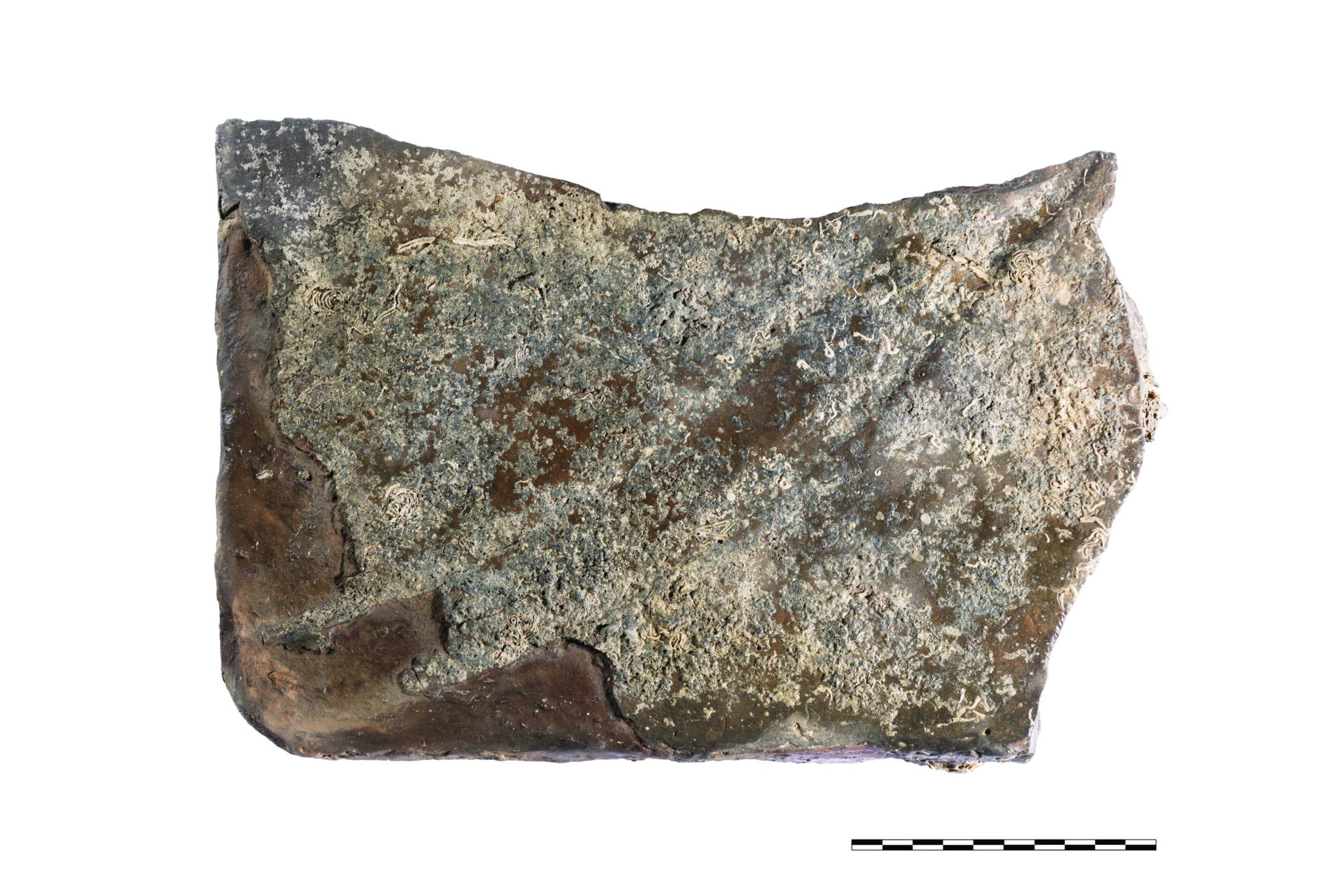 Ενδιαφέρον, με τη σειρά του, παρουσιάζει τμήμα της επιχάλκωσης, το οποίο τοποθετείται ακριβώς στο σημείο σύνδεσης των φύλλων του χαλκού με τα φύλλα του μολύβδου. Μεταξύ των λοιπών ευρημάτων ξεχωρίζει τμήμα πήλινης πλάκας, η οποία σχετίζεται πιθανώς με τη μόνωση της εστίας του πλοίου. Η πλάκα εντοπίστηκε σε μικρή απόσταση από την τρόπιδα του πλοίου.