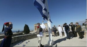 Στις 08:00, πραγματοποιήθηκε η επίσημη έπαρση της Εθνικής Σημαίας στον Ιερό Βράχο της Ακρόπολης.
