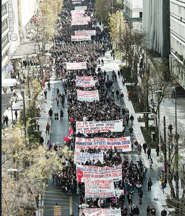 Ένταση επικράτησε έξω από το Μέγαρο Μαξίμου όταν ομάδα φοιτητών προσπάθησε να αναρτήσει πανό με συνθήματα κατά των μη κρατικών πανεπιστημίων. Οι συγκεντρωμένοι απωθήθηκαν από την αστυνομία
