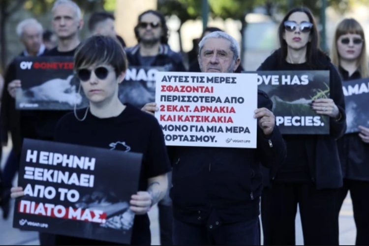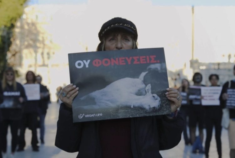 Νέα δράση διαμαρτυρίας και ευαισθητοποίησης, εν όψει της Κυριακής του Πάσχα, με το σύνθημα «η σφαγή δεν είναι αγάπη», πραγματοποίησαν οι βίγκανς στο Σύνταγμα.