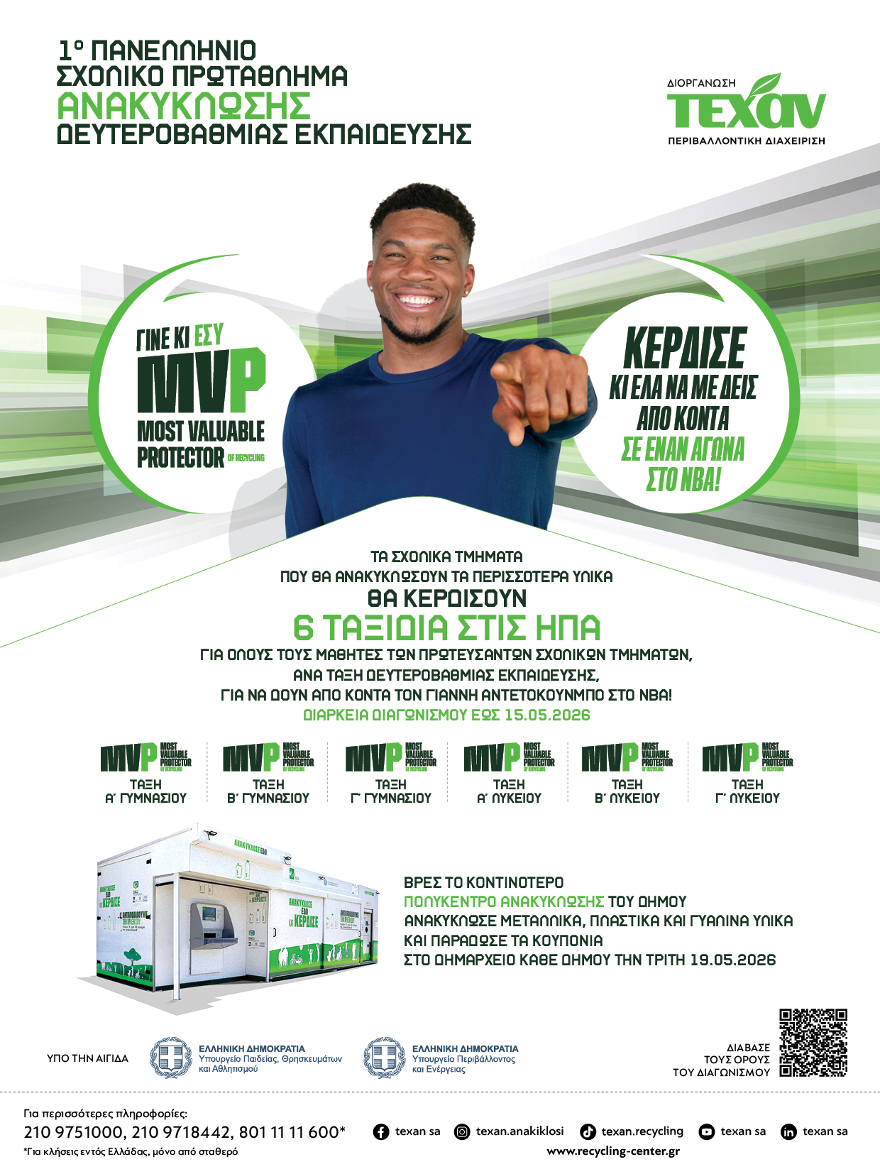 Η ανταπόκριση των μαθητών είναι εντυπωσιακή, με σχολικά τμήματα από όλη τη χώρα να συμμετέχουν ενεργά συγκεντρώνοντας πλαστικά, μεταλλικά και γυάλινα υλικά προς ανακύκλωση στα Πολυκέντρα Ανακύκλωσης, με στόχο να ανακηρυχθούν MVP’s της Ανακύκλωσης, να ταξιδέψουν με τους συμμαθητές τους στις Η.Π.Α. και να συναντήσουν από κοντά το είδωλό τους Γιάννη Αντετοκούνμπο.