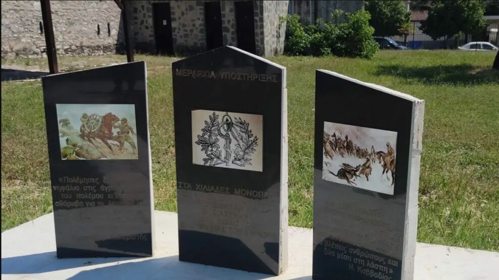 Μνημείο για… πεσόντα άλογα καιέχει στηθεί στη Λάρισα, και συγκεκριμένα στο Στρατόπεδο Πλαστήρα, έξω από το Κτηνιατρικό Μουσείο της θεσσαλικής πόλης. Το μνημείο είναι αφιερωμένο στους τετράποδες ήρωες που… έπεσαν εν ώρα καθήκοντος στα μέτωπα τού πολέμου, μεταφέροντας με ταχύτητα και αυταπάρνηση τους γενναίους καβαλάρηδες στον στόχο τους. Όπως σημειώνει ο δημοσιογράφος Γιώργος Τράντας, που έφερε στη δημοσιότητα τις φωτογραφίες, στα αριστερά του μνημείου γράφει: «Πολέμησες δίπλα μας, νηφάλιο στις άγριες μπόρες τού πολέμου, κι έπεσες αθόρυβα για τη λευτεριά μας, σαν αφανής και ανώνυμος στρατολάτης. Αιωνία σου η μνήμη». Το υπογράφει ο «Ανώνυμος πολεμιστής». Στο μεσαίο μνημείο, που έχει την υπογραφή της Μεραρχίας Υποστήριξης, αναγράφεται: «Στα χιλιάδες μόνοπλα ζώα τού Στρατού που πολέμησαν και θυσιάστηκαν στον βωμό της ελευθερίας του Έθνους». Τέλος, στο τρίτο μνημείο υπάρχει ένα χαρακτηριστικό κομμάτι από το πεζογράφημα του Νίκου Καββαδία «Στο άλογό μου»: «Βαρυφορτωμένοι, κατάκοποι προχωρούσαμε. Είν’ αφάνταστη η λύπη κι η κακομοιριά που δοκιμάζεις σαν αισθάνεσαι, να ’σαι και να βλέπεις ανθρώπους και ζώα και τα πάντα μες στη λάσπη».