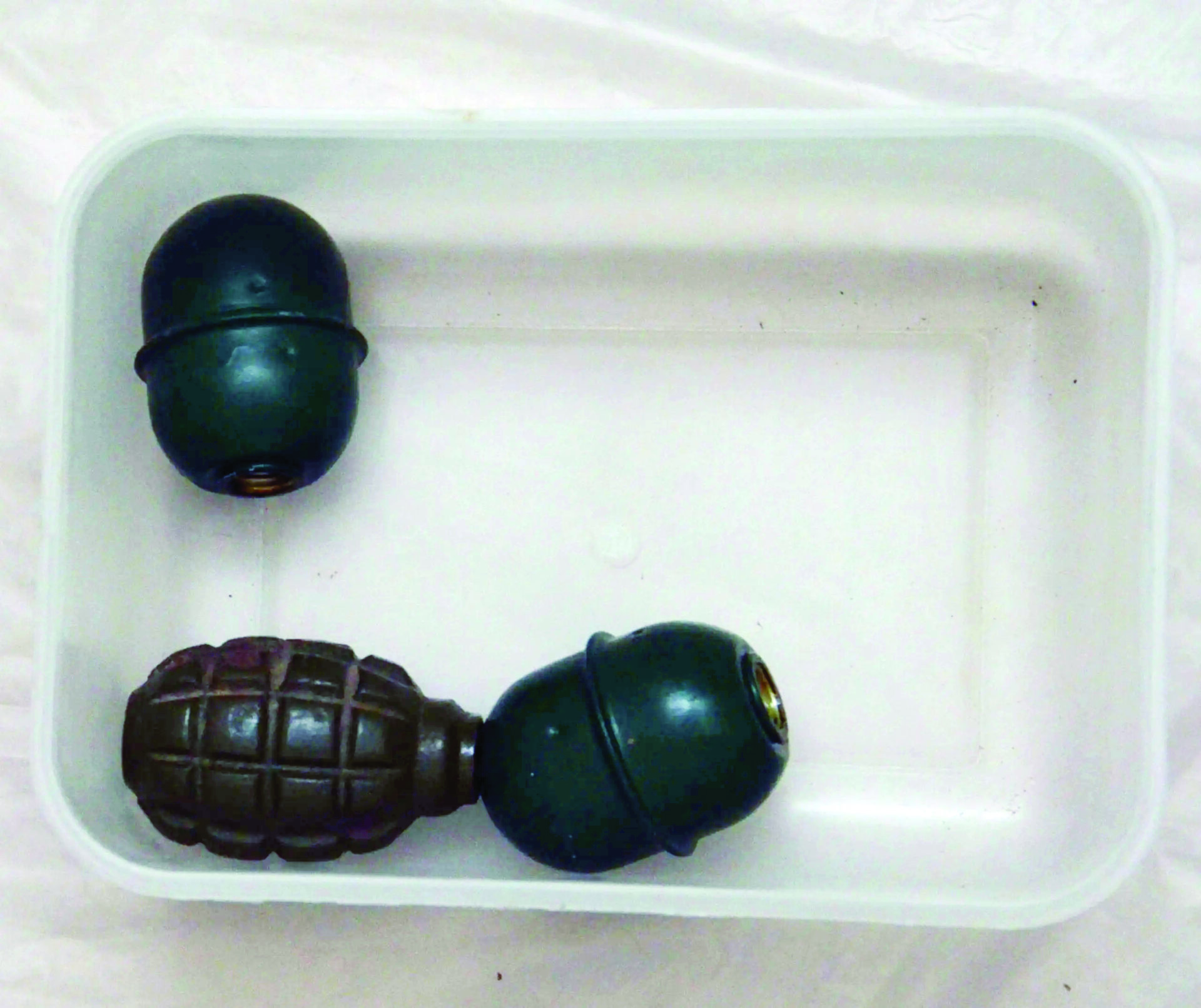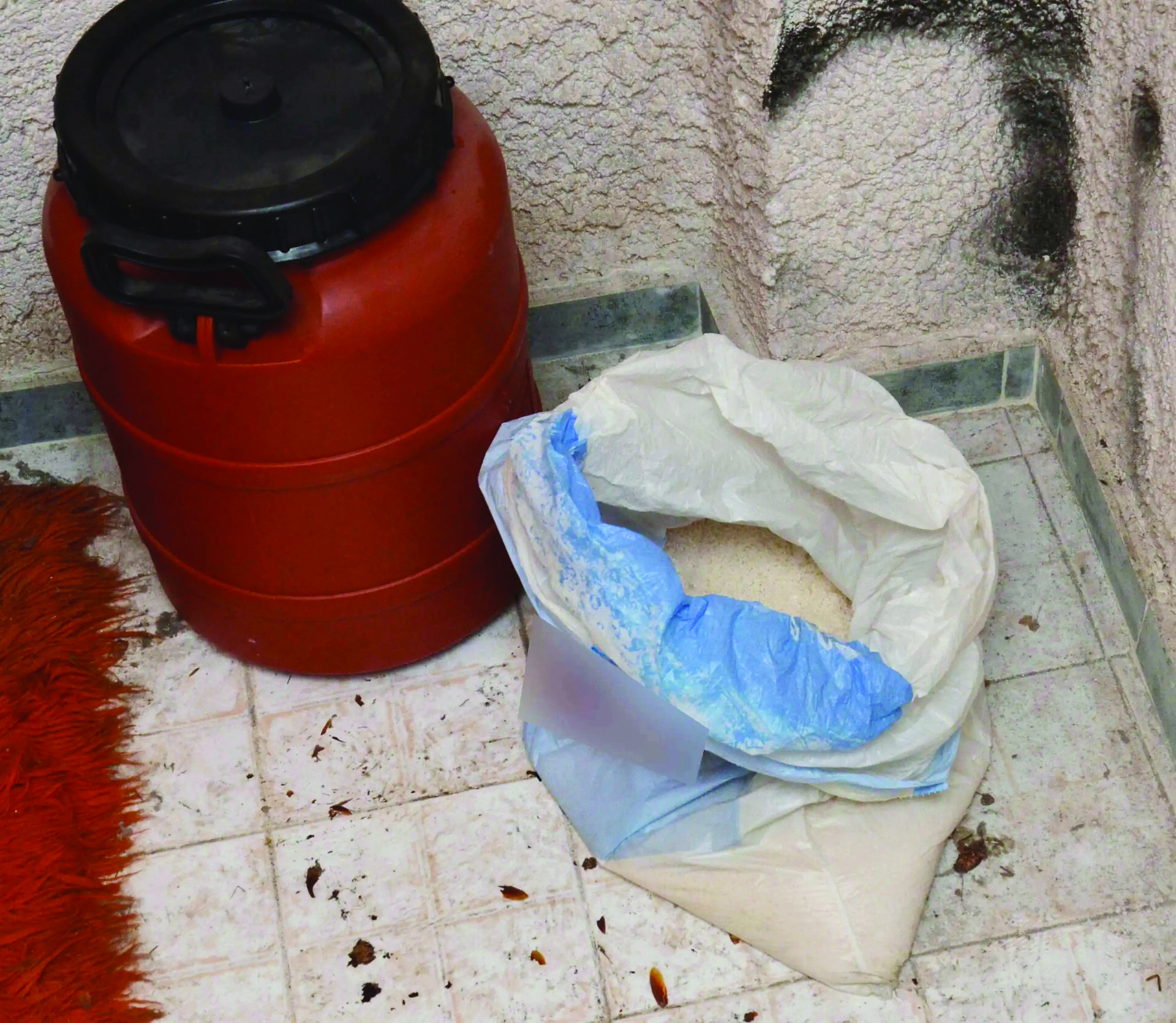 Δύο κιλά ΤΝΤ (στρατιωτική εκρηκτική ύλη), 7,5 κιλά αμμωνιοδυναμίτιδας, 3 κιλά ζελατοδυναμίτιδας, σφαίρες, έξι πυροβόλα όπλα και ένα υποπολυβόλο, τρεις χειροβομβίδες, φιτίλια, 25 πυροκροτητές, 37 κιλά νιτρικής αμμωνίας (προφανώς για την κατασκευή βομβών τύπου AΝFO), μια πλαστή πινακίδα και ένας φορητός υπολογιστής είναι τα πρώτα ευρήματα των αστυνομικών στο υπόγειο διαμέρισμα-αποθήκη πολυκατοικίας στη συμβολή των οδών Αγλαυρίδων και Δαμαγήτου.