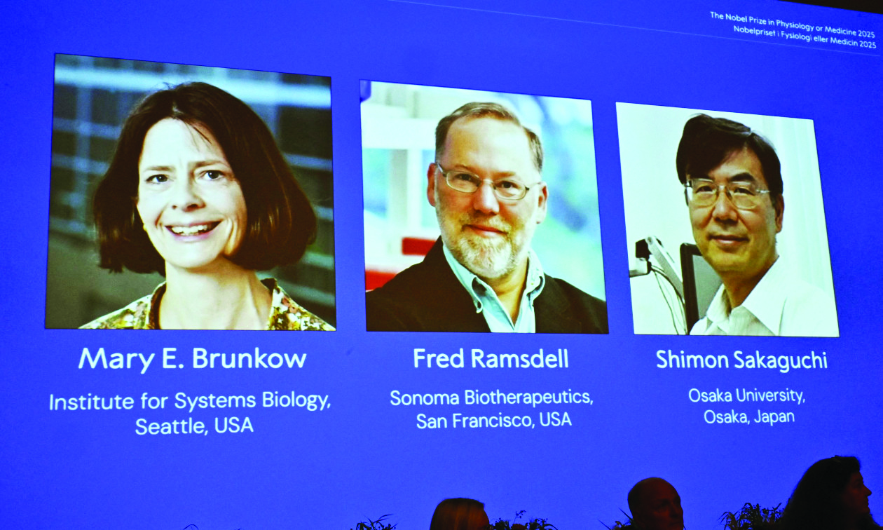 Στους Αμερικανούς Μέρι Μπράνκοου και Φρεντ Ράμσντελ και στον Ιάπωνα Σίμον Σακαγκούτσι απονεμήθηκε φέτος το Νόμπελ Φυσιολογίας – Ιατρικής. Οι τρεις επιστήμονες θα μοιραστούν 11 εκατ. κορόνες (περίπου 1 εκατ. ευρώ) για τις ανακαλύψεις τους σχετικά με τους μηχανισμούς που κρατούν υπό έλεγχο το ανοσοποιητικό σύστημα.