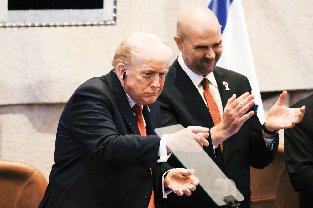 Ο πρόεδρος Τραμπ έτυχε αποθεωτικής υποδοχής στην Κνεσέτ από όλους τους βουλευτές που επί ώρα τον χειροκροτούσαν. Ακολούθησαν εκτενείς ομιλίες του προέδρου της Κνεσέτ, του πρωθυπουργού και του αρχηγού της αντιπολίτευσης. Όλοι υποσχέθηκαν ότι θα κάνουν ό,τι περνά από το χέρι τους ώστε το 2026 ο Ντόναλντ Τραμπ να πάρει το Νόμπελ Ειρήνης.