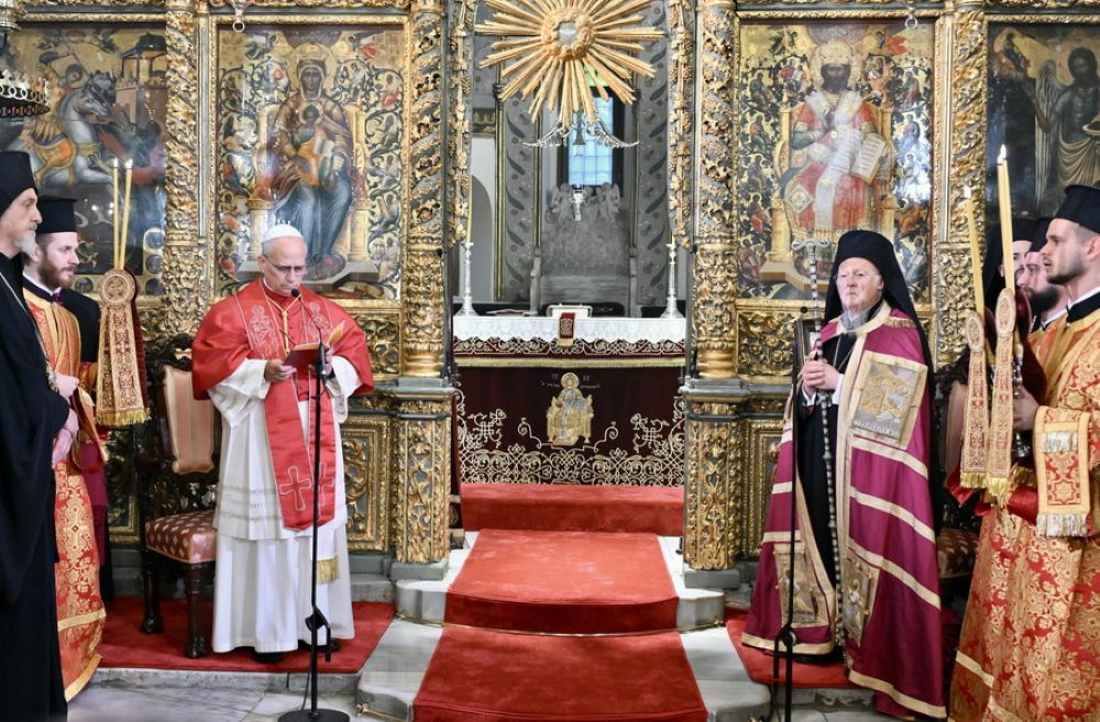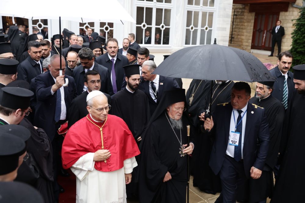 Σε ατμόσφαιρα ιδιαίτερης συγκίνησης και υψηλού συμβολισμού, ο Πάπας Λέων ΙΔ’ έφτασε το απόγευμα του Σαββάτου στο Οικουμενικό Πατριαρχείο. Η υποδοχή από τον Οικουμενικό Πατριάρχη Βαρθολομαίο πραγματοποιήθηκε στις 15:30 τοπική ώρα, παρουσία ιεραρχών από την Κωνσταντινούπολη και τη Ρώμη, διπλωματικών αντιπροσωπειών, αλλά και του Πατριάρχη Αλεξανδρείας Θεοδώρου.