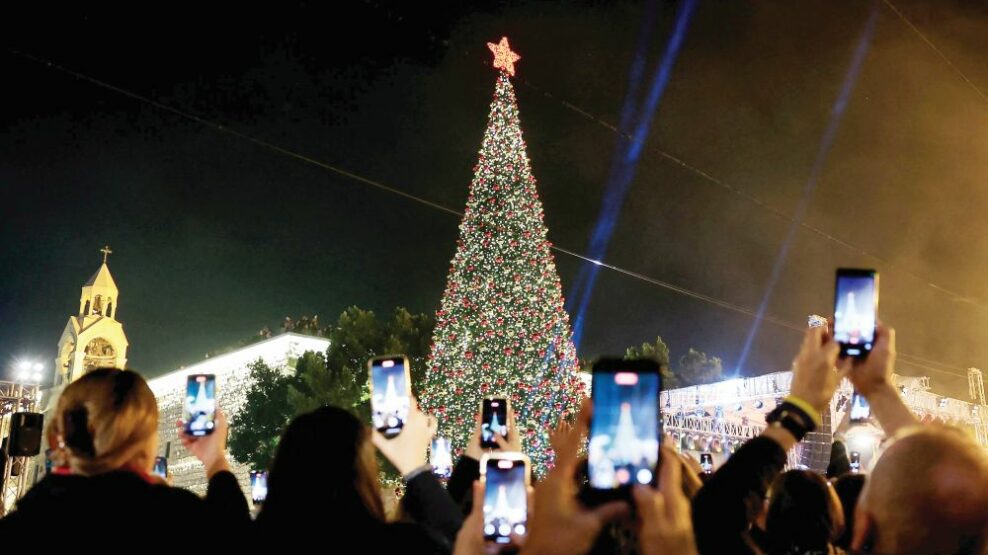 Για πρώτη φορά ύστερα από τρία χρόνια στη Βηθλεέμ φωταγωγήθηκε το χριστουγεννιάτικο δέντρο. Οι δημόσιοι εορτασμοί στη Δυτική Όχθη, με επίκεντρο τη Βηθλεέμ, διακόπηκαν καθ’ όσον βρισκόταν σε εξέλιξη ο πόλεμος στη Λωρίδα της Γάζας. Φέτος, μετά την πρόσφατη εκεχειρία, οι τοπικές Αρχές αποφάσισαν να επαναλάβουν τους εορτασμούς, με το δέντρο να ανάβει μπροστά στην Εκκλησία της Γέννησης. Όπως αναγνώρισε ο δήμαρχος της Βηθλεέμ, Μαχέρ Κανάουατι, «ζούμε από τον τουρισμό και αυτός είχε πέσει στο μηδέν».