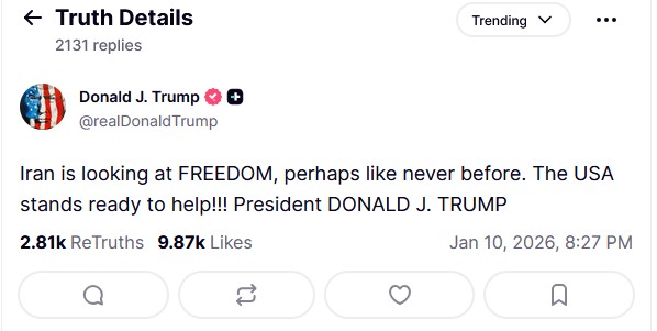 Οι κινητοποιήσεις στο Ιράν ξεκίνησαν στα τέλη Δεκεμβρίου λόγω της οικονομικής κρίσης και του υψηλού πληθωρισμού, όμως γρήγορα έλαβαν πολιτική διάσταση και επεκτάθηκαν σε πολλές πόλεις. Οι ιρανικές αρχές κατηγορούν τις ΗΠΑ και το Ισραήλ ότι υποδαυλίζουν τις ταραχές, ενώ η αστυνομία ανακοίνωσε συλλήψεις σημαντικών προσώπων του κινήματος διαμαρτυρίας.