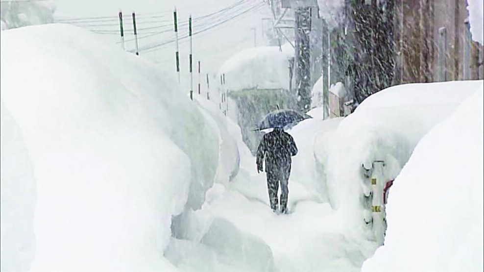 Τις δύο τελευταίες εβδομάδες 30 άνθρωποι έχασαν τη ζωή τους στην Ιαπωνία από τη βαρυχειμωνιά. Ισχυρές ψυχρές αέριες μάζες προκάλεσαν έντονες χιονοπτώσεις τις τελευταίες εβδομάδες κατά μήκος των ακτών στη θάλασσα της Ιαπωνίας. Χθες η περιφέρεια της Αομόρι ζήτησε τη συνδρομή του στρατού, καθώς το χιόνι σχηματίζει στους δρόμους της πρωτεύουσας της περιφέρειας τείχη ως και 1,83 μ. και στις απομονωμένες περιοχές φτάνει ακόμα και τα 4,5 μέτρα. Οι ένοπλες δυνάμεις κατάφεραν να βοηθήσουν στον εκχιονισμό σπιτιών ηλικιωμένων κατοίκων.