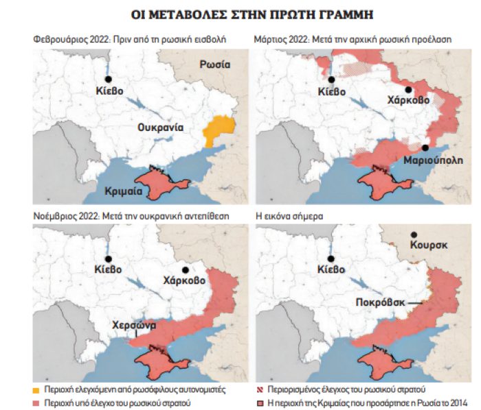 Ύστερα από τέσσερα χρόνια μαχών τα ρωσικά στρατεύματα ελέγχουν περίπου το ένα πέμπτο του ουκρανικού εδάφους – 116.000 έως 120.000 τετραγωνικά χιλιόμετρα. Δεν έχουν καταφέρει να καταλάβουν το σύνολο της περιοχής του Ντονμπάς. Όσα δεν κατέκτησαν ζητούν να τους εκχωρηθούν στο πλαίσιο της συμφωνίας εκεχειρίας. Οι στρατιωτικές απώλειες, τραυματίες και νεκροί, εκτιμάται ότι ξεπερνούν το 1.800.000, με περίπου τα δύο τρίτα να είναι Ρώσοι. Πάνω από 15.000 Ουκρανοί πολίτες έχουν σκοτωθεί και σχεδόν 10.000.000 έχουν εκτοπιστεί.